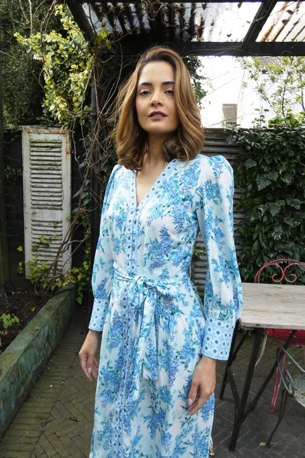 Step into Summer with our Aaliyah Blue Dress. A beautiful maxi dress with contrast pattern border on the cuffs and neckline. This flattering piece will suit every body type.