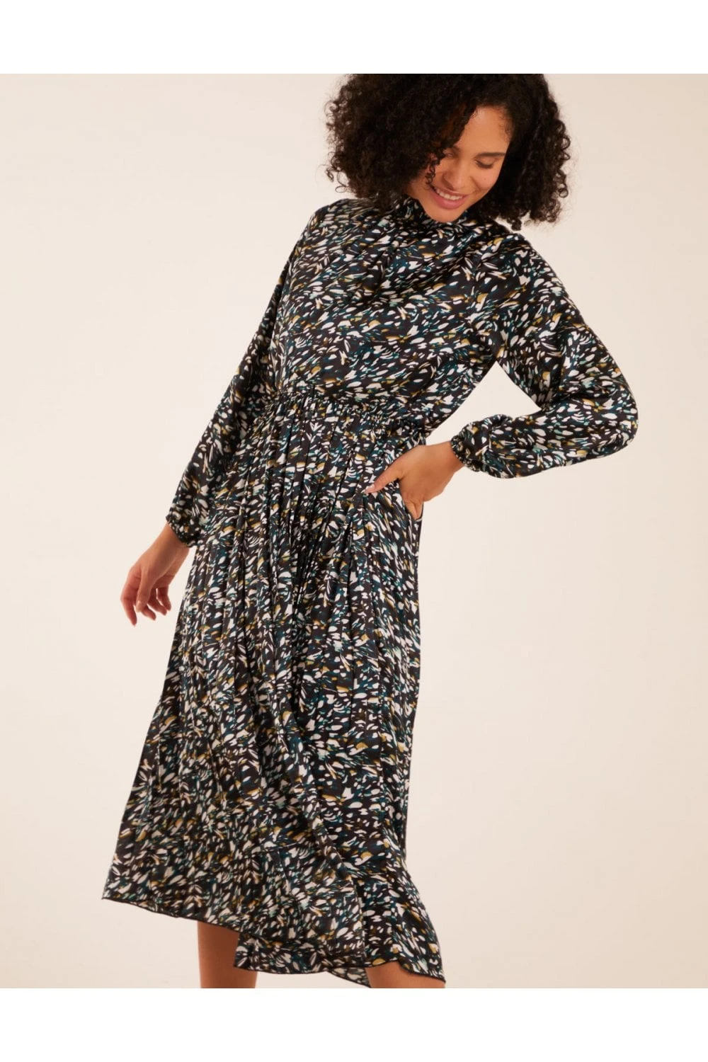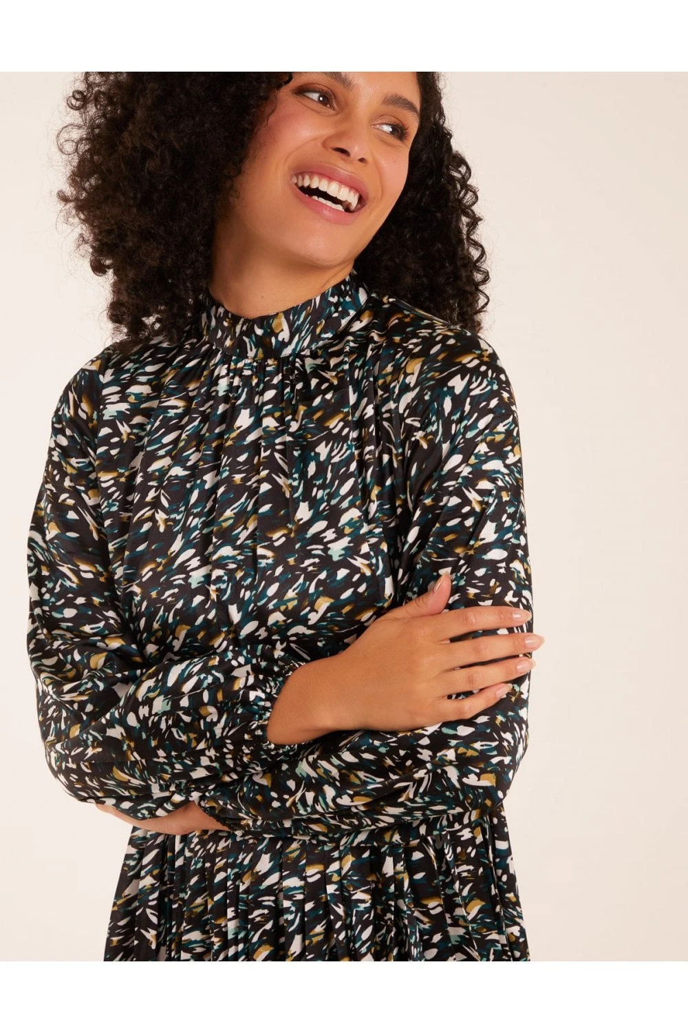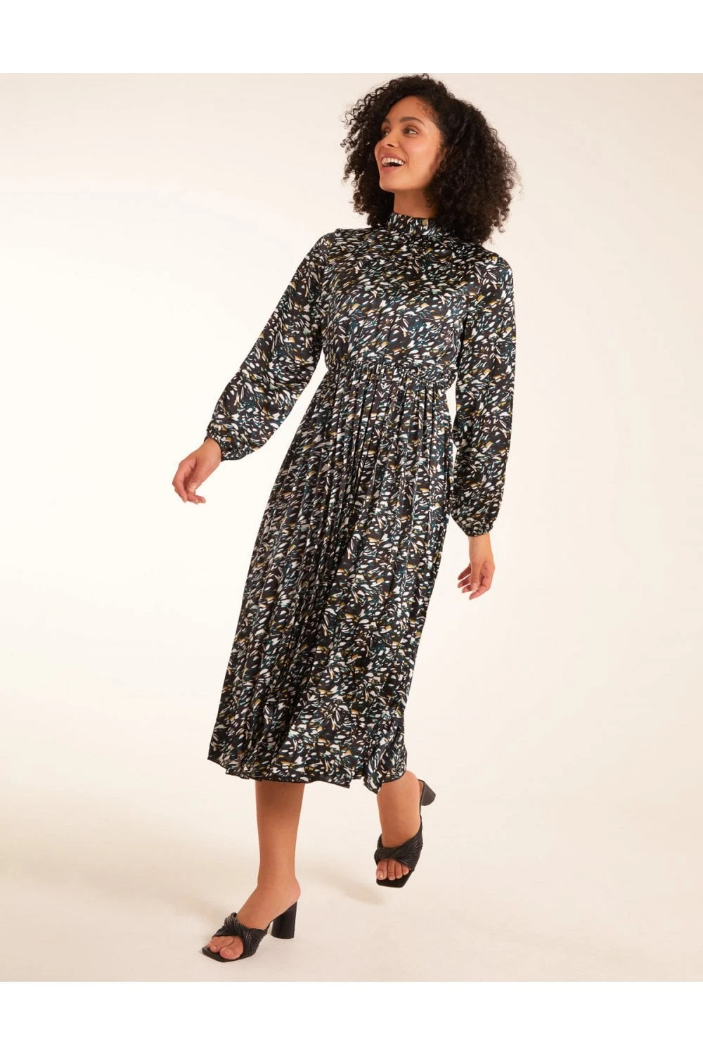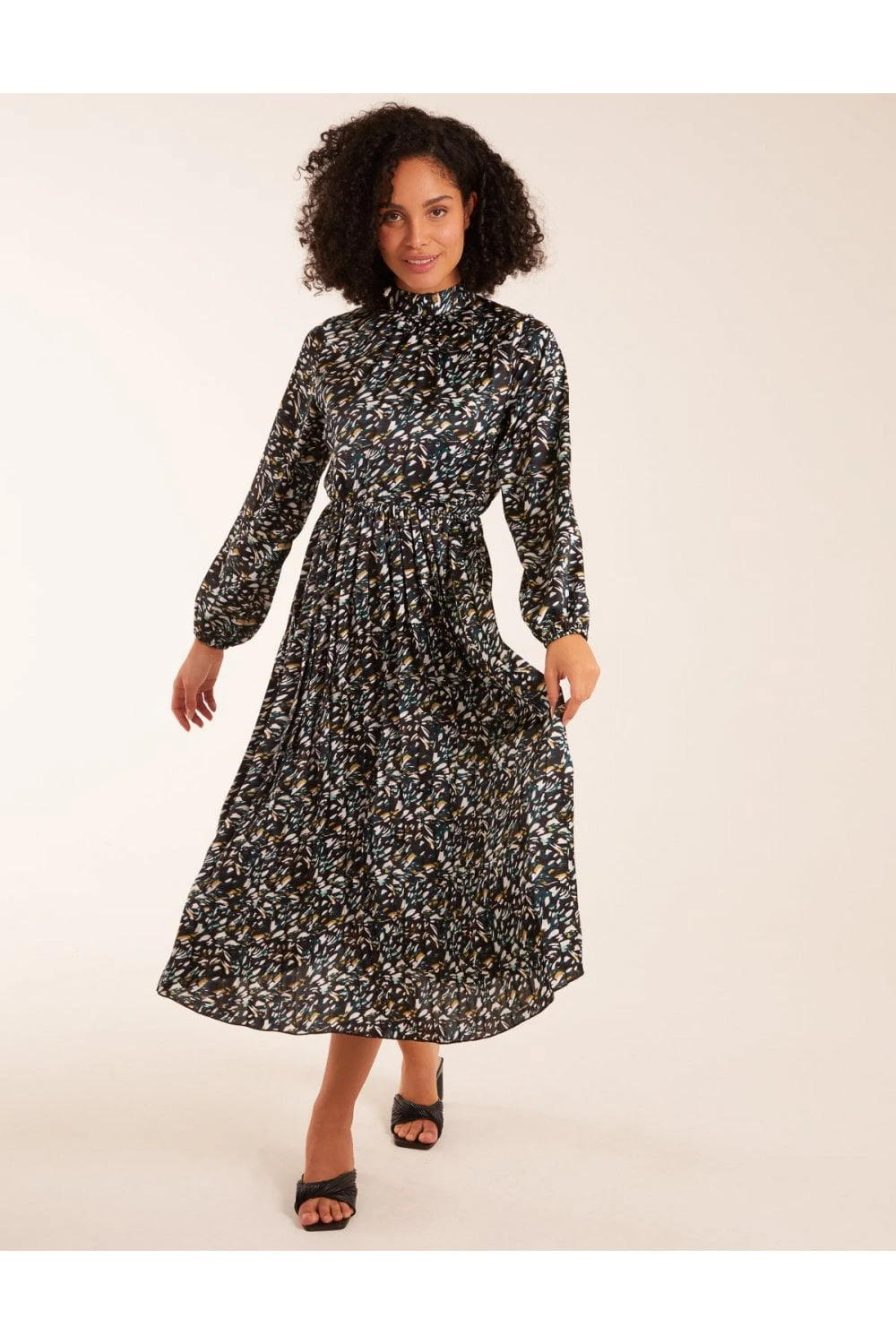 Fancy going to a fancy event or a cocktail with friends in style? Look no further than our Abstract Animal Print High Neck Blouson Dress. With its gorgeous orange colour, this dress also features long puff sleeves, a high neck and an elegant midi length. Complete your style with a mini bag and high heels.