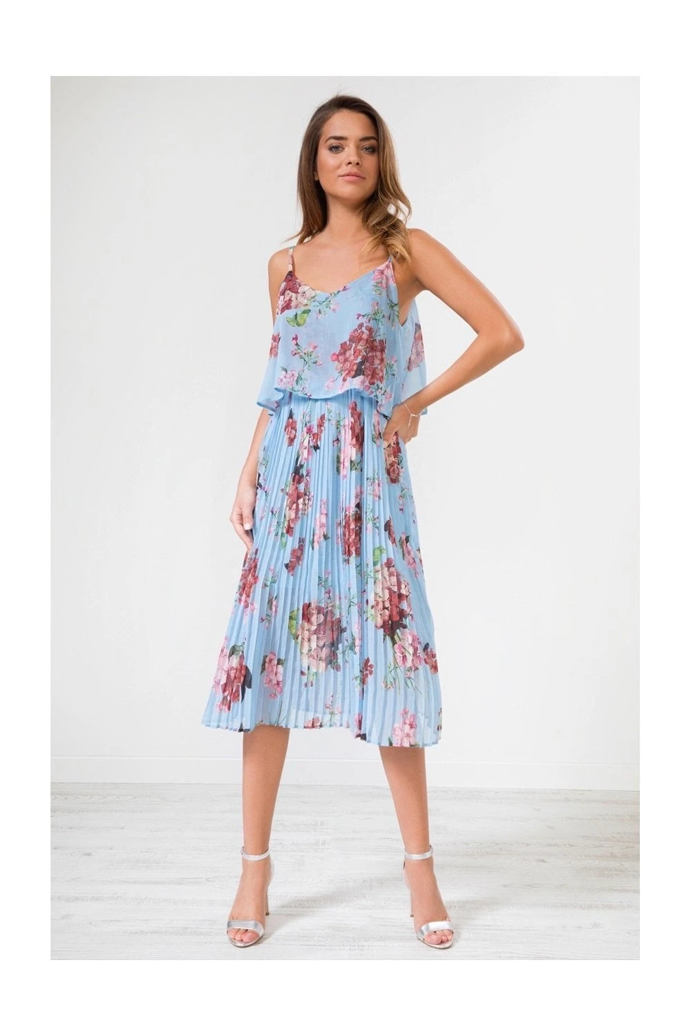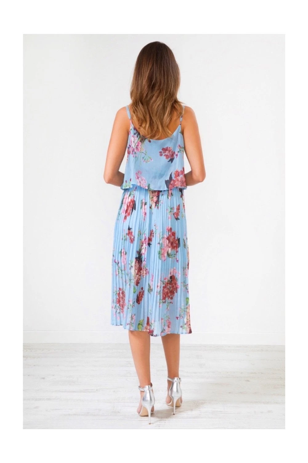 Crafted from a lightweight material, this dress showcases a pleated skirt, double layered bodice and a stunning floral print. Pair with sandals or strappy stilettos for a polished look.