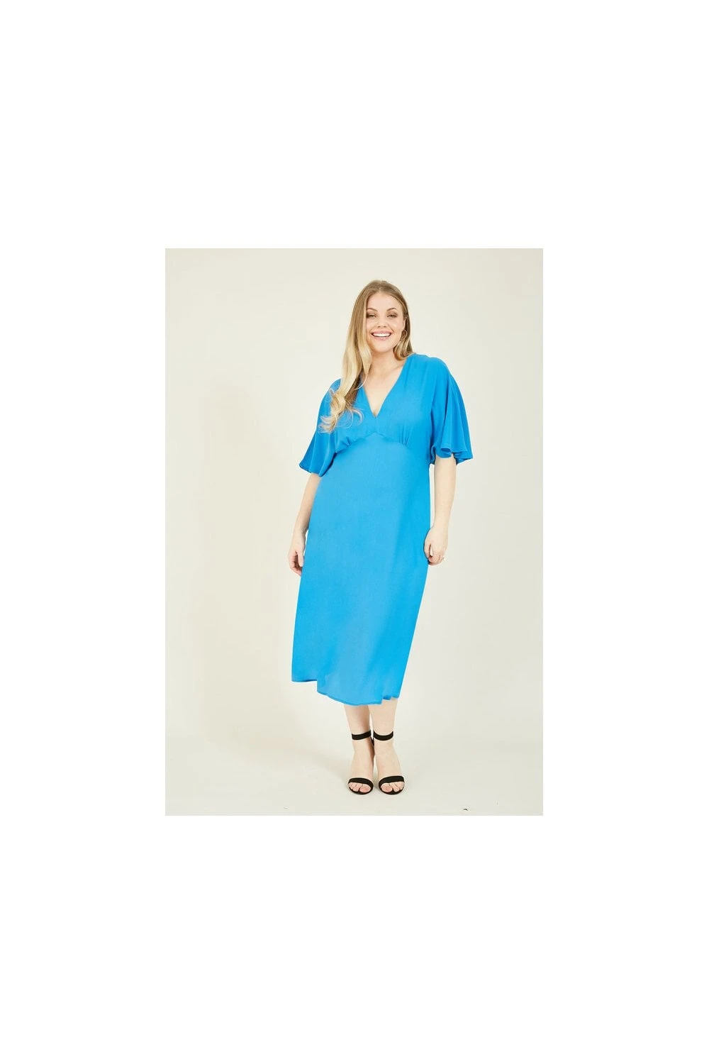 Making a style statement is made easy by our Yumi Plus Size Kimono Sleeve Midi Dress. With a simple yet effective design, it’s crafted from lightweight fabric that shows off an exposed empire line, flared sleeves and a mid-length cut. Refresh your look with a faux-leather jacket, boots and a slouch bag for weekends.