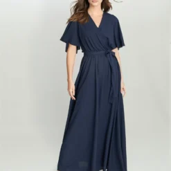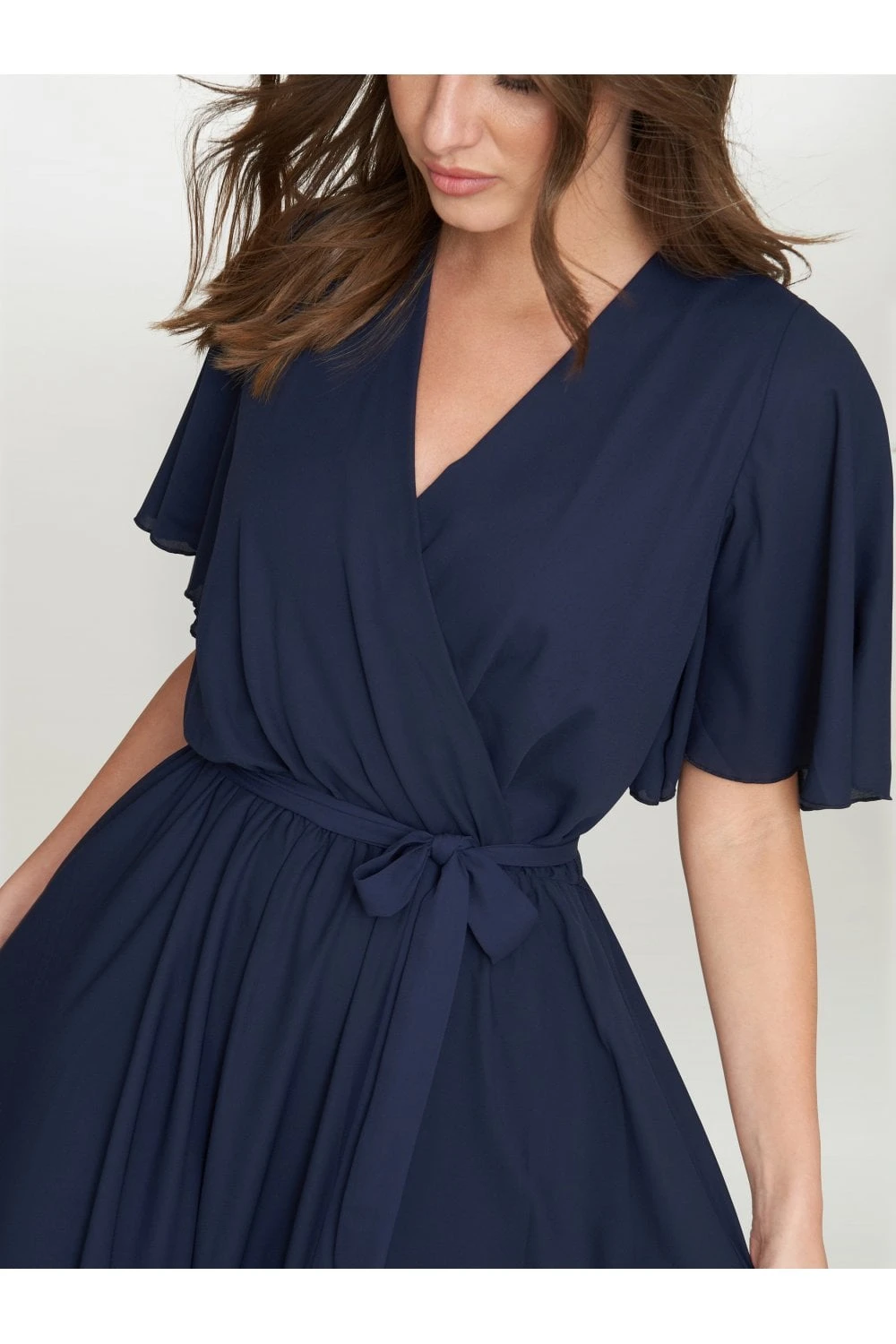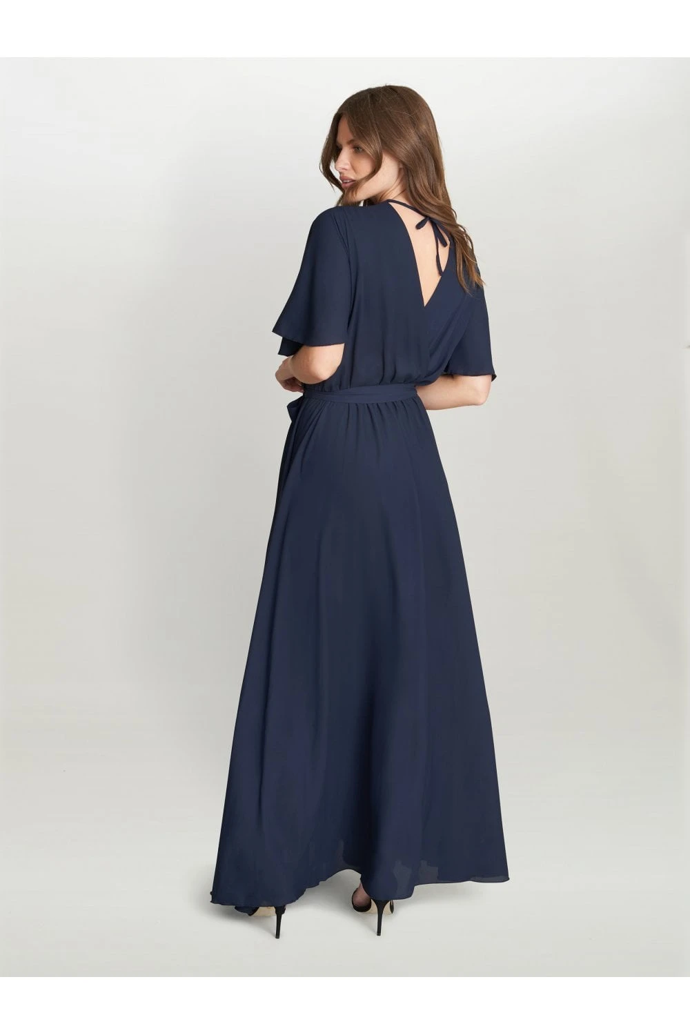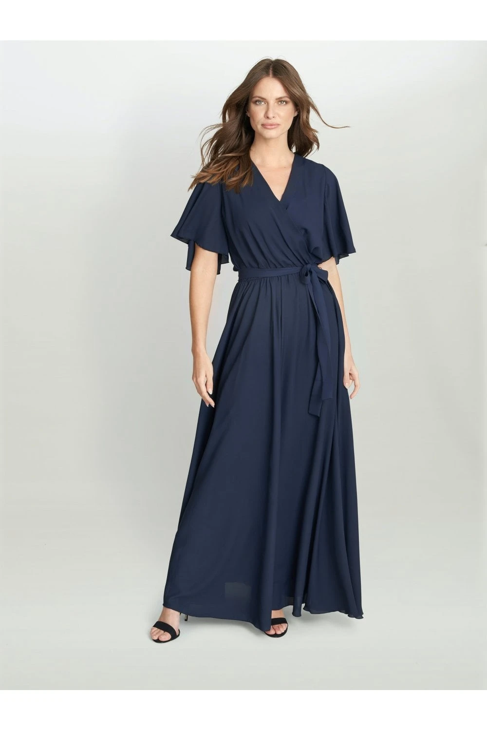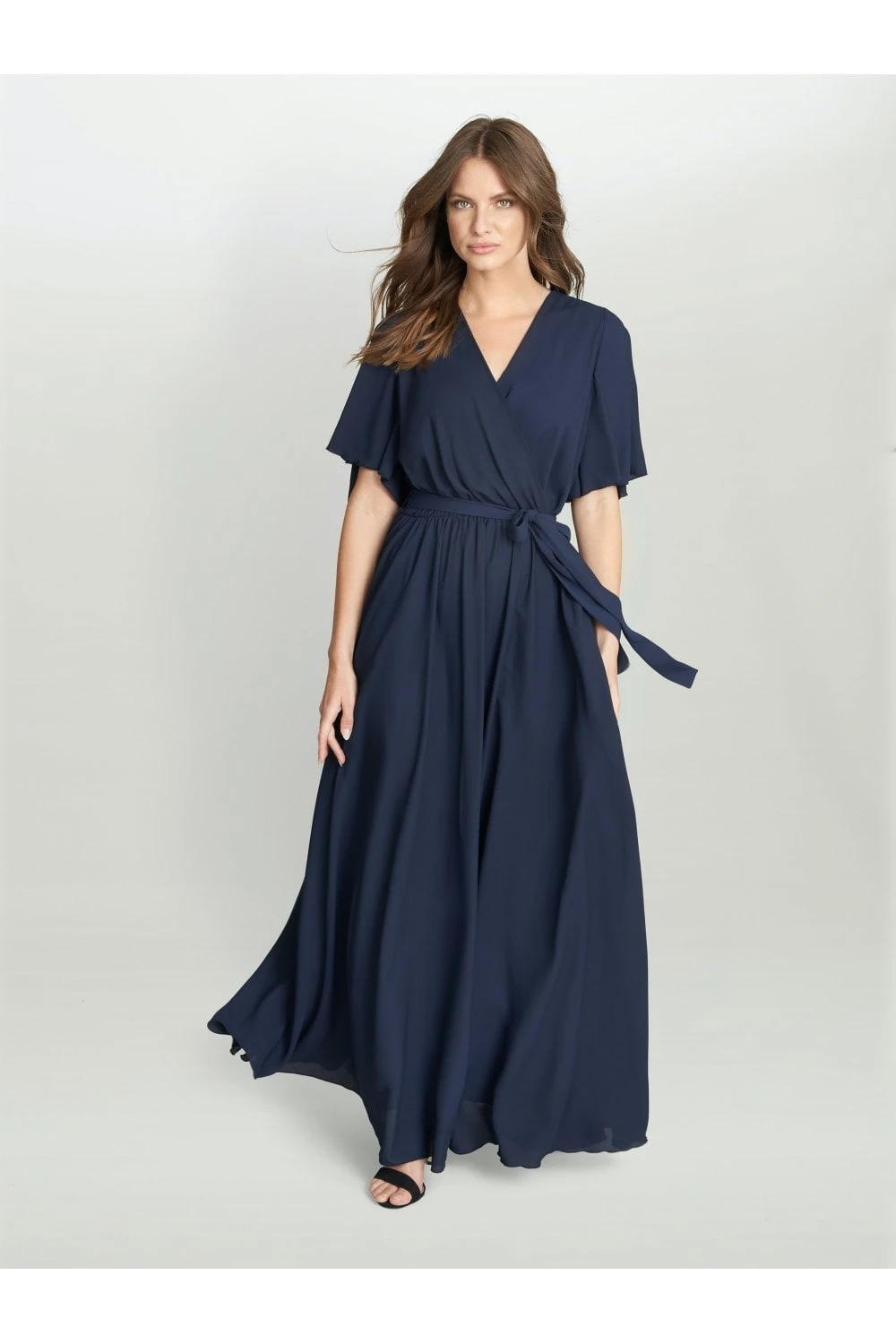 Simple perfection, this Gina Bacconi wrap chiffon dress, features a floaty elbow length sleeve and full skirt. Constructed in lightweight fabric its perfect for special occasions and bridesmaids. Pair with the matching shawl.Â