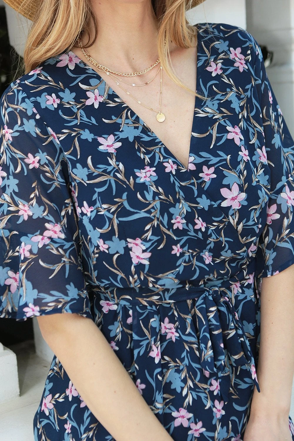 An essential collection of your summer wardrobe, this floral print midi dress has a beautiful v-neckline and a wrap high-low bottom with ruffles to add style and glamour to your look. Elastic waist for a fitted comfort, and a tie belt for added style. Wear with heels or sandals for going out.