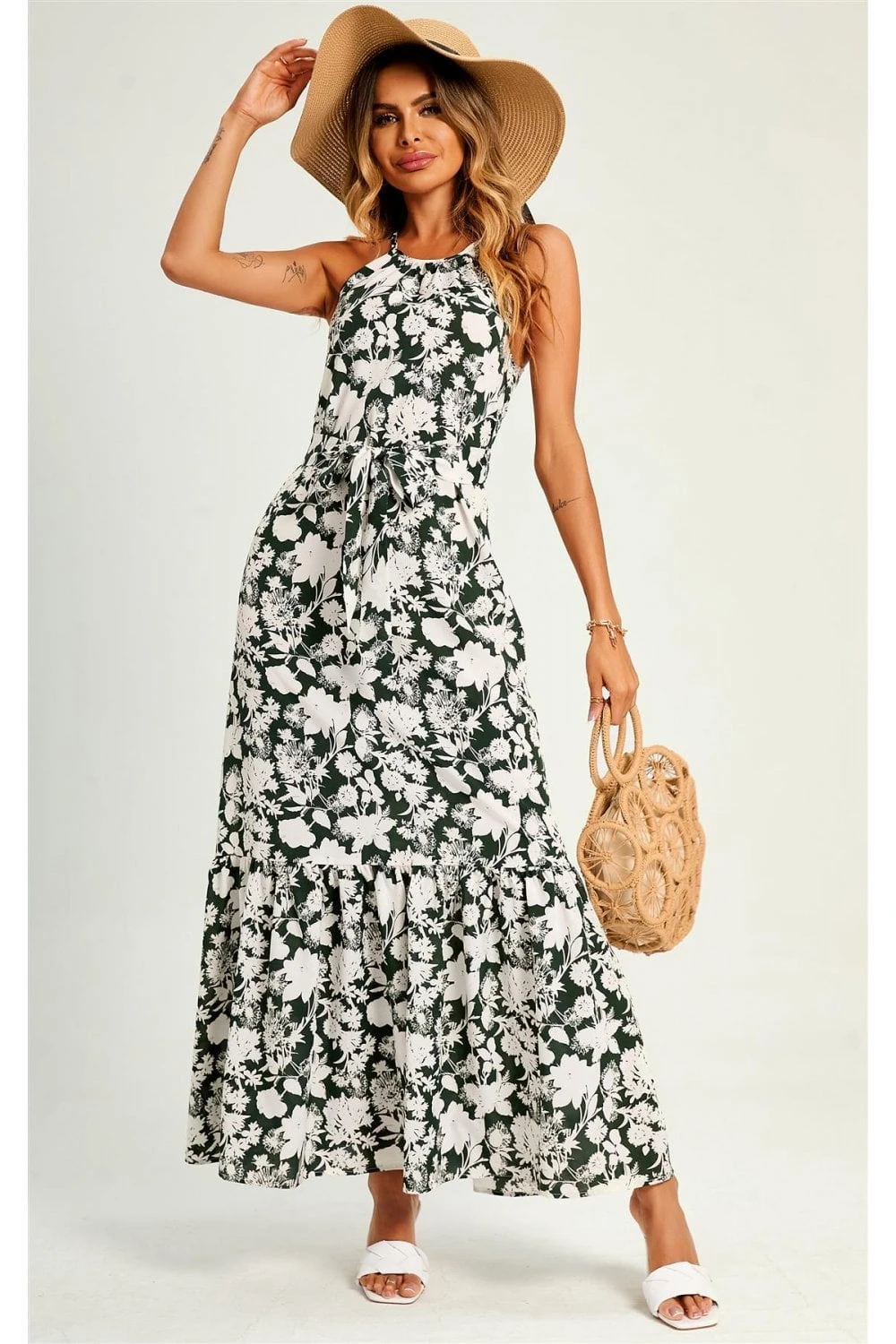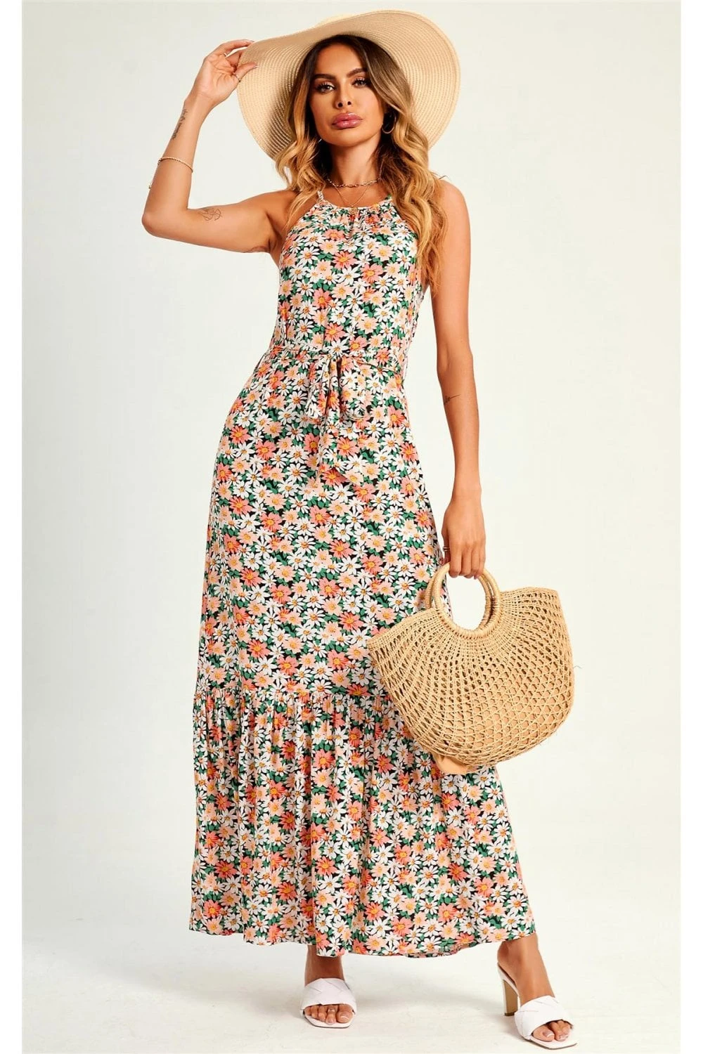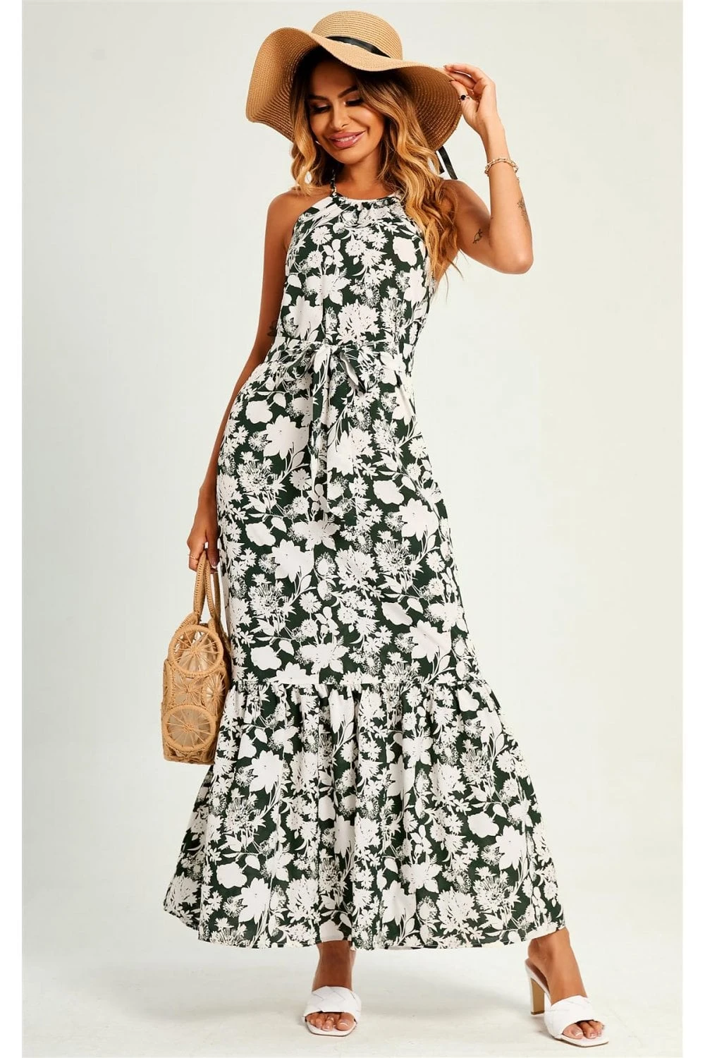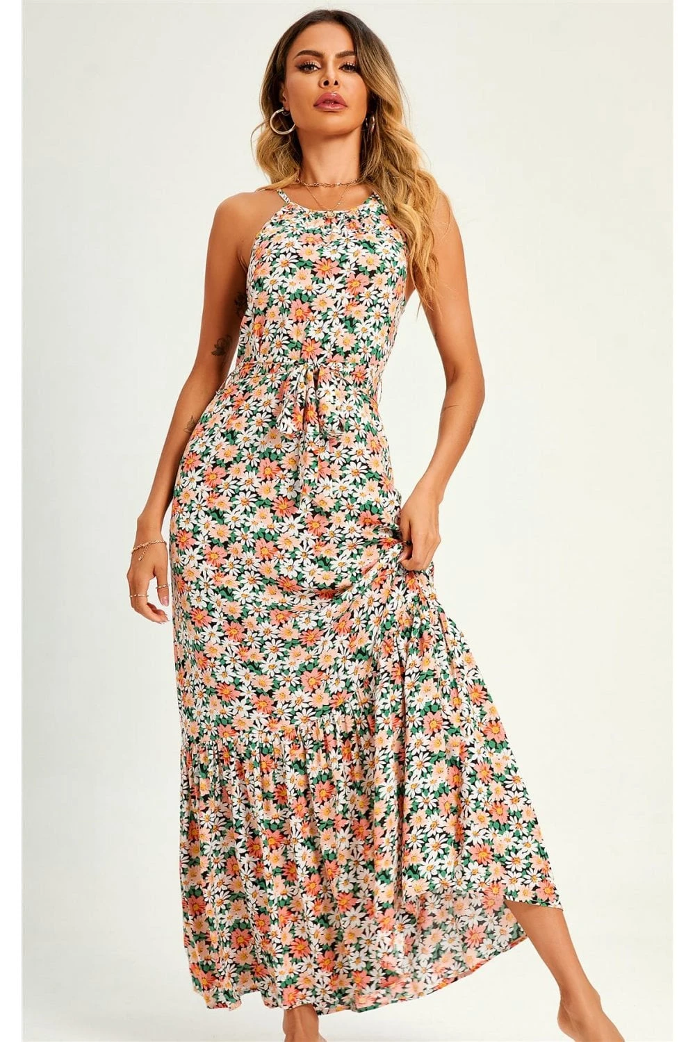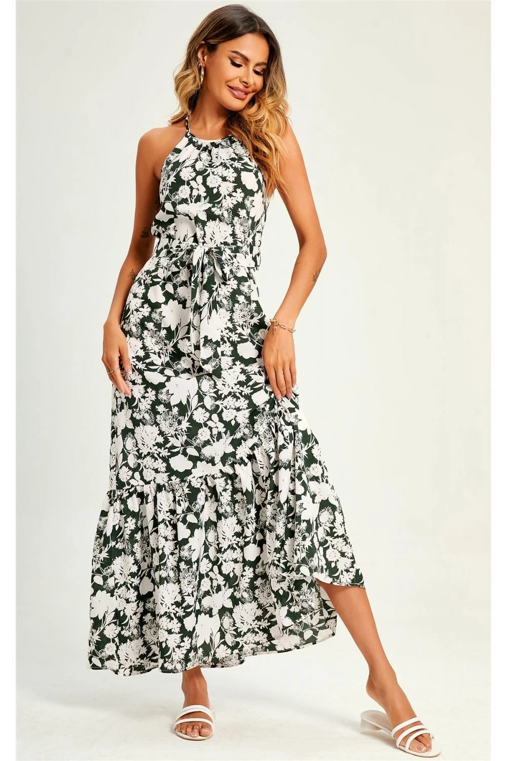 Halterneck Tiered Maxi Dress