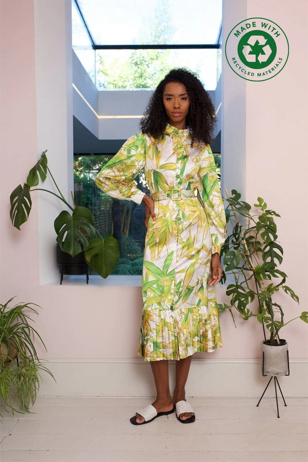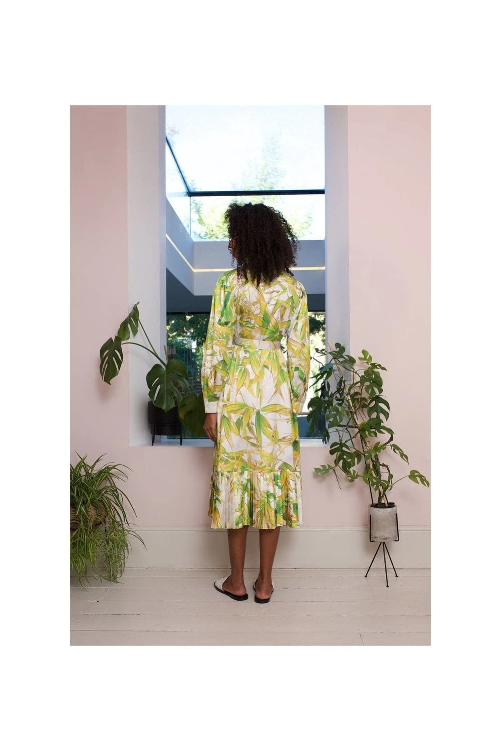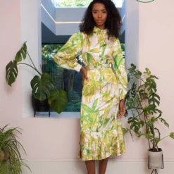 The perfect update for your Spring wardrobe! With a striking yellow print, bring some colour into your style. This pleated hem maxi dress features long balloon sleeves, high collar and tiny button detail. Also comes with a detachable belt.