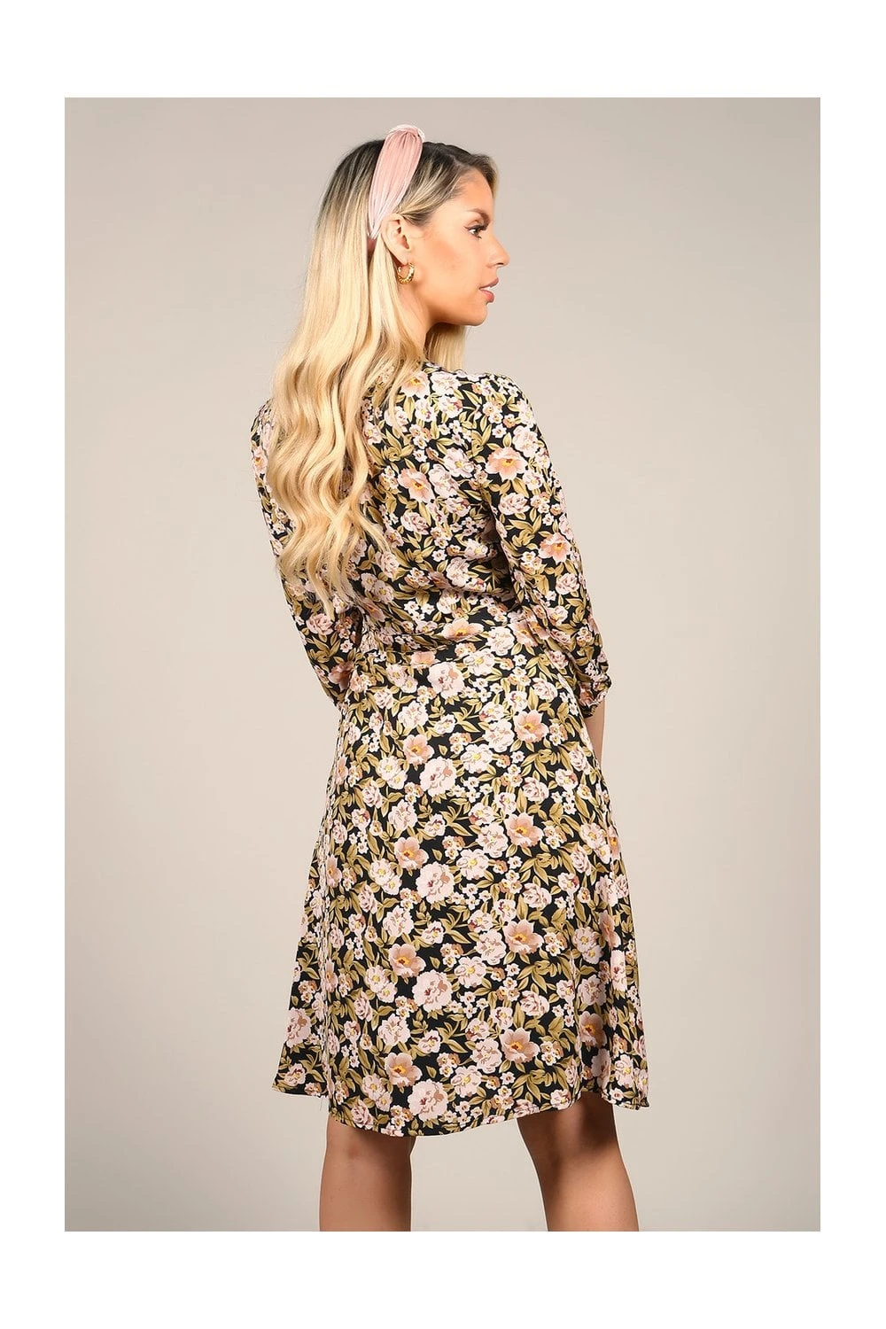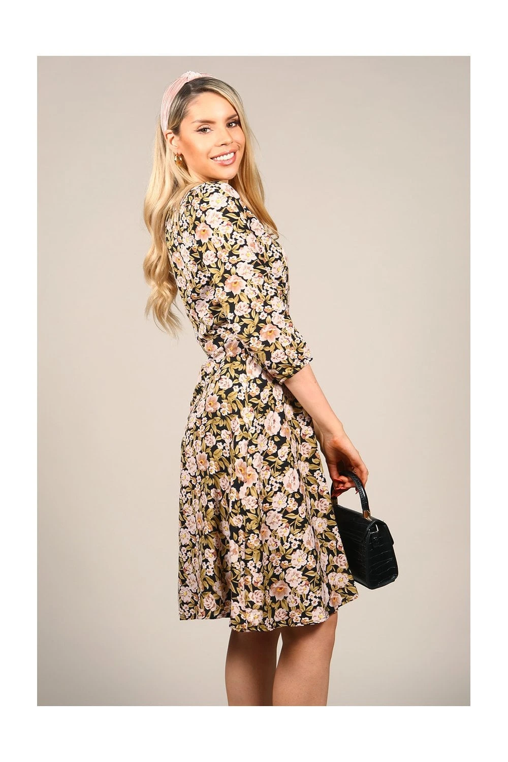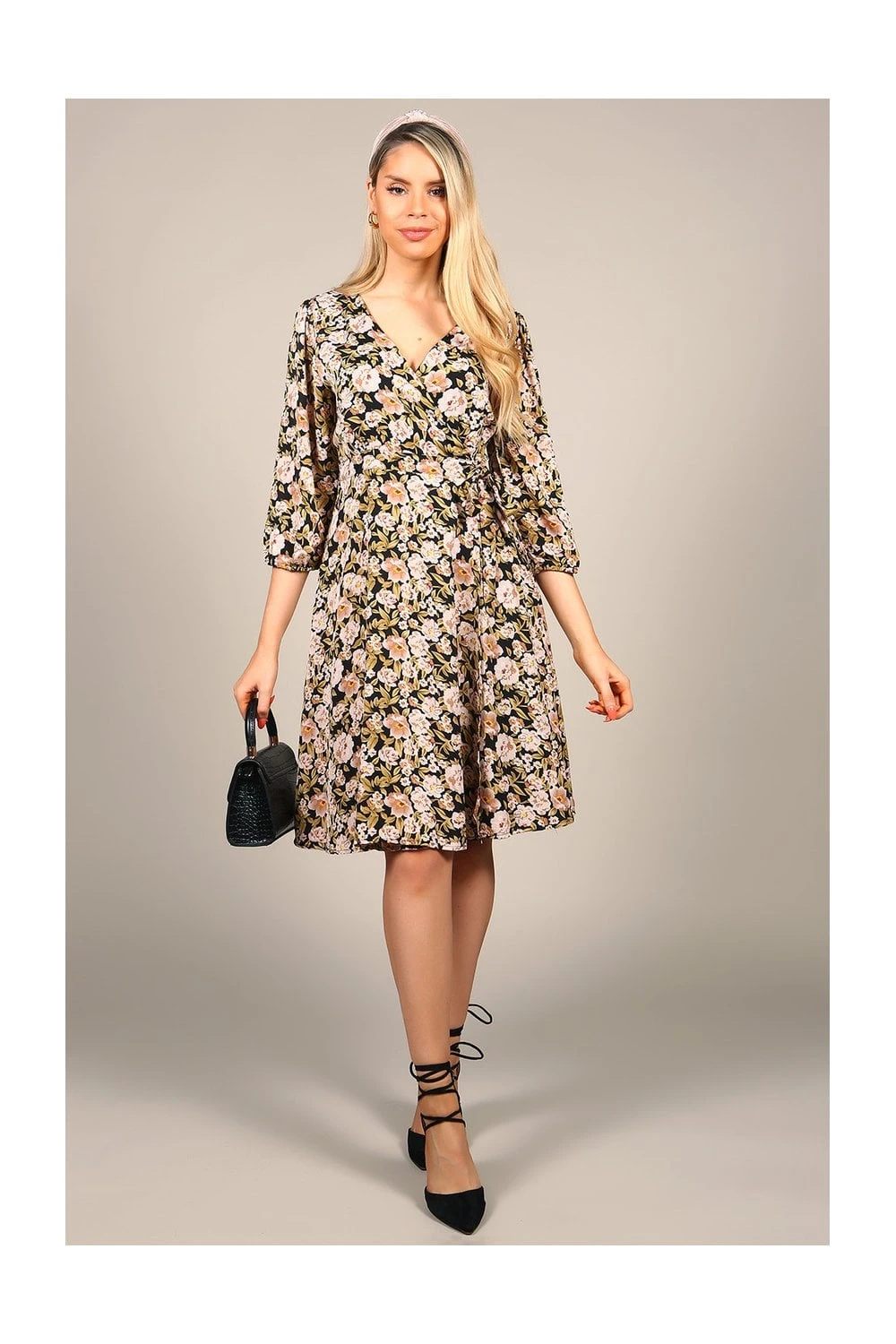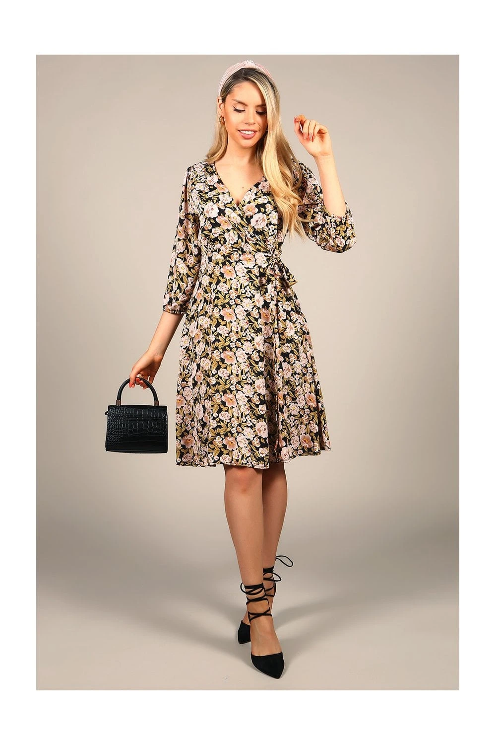 A perfect addition to your autumn winter wardrobe, this quarter sleeve dress is made in wrap design to give you the trendy style. Finished with side zip fastening for a good fit, this floral print wrap dress will make you feel comfy. Wear with heels or sandals for going out.Â
