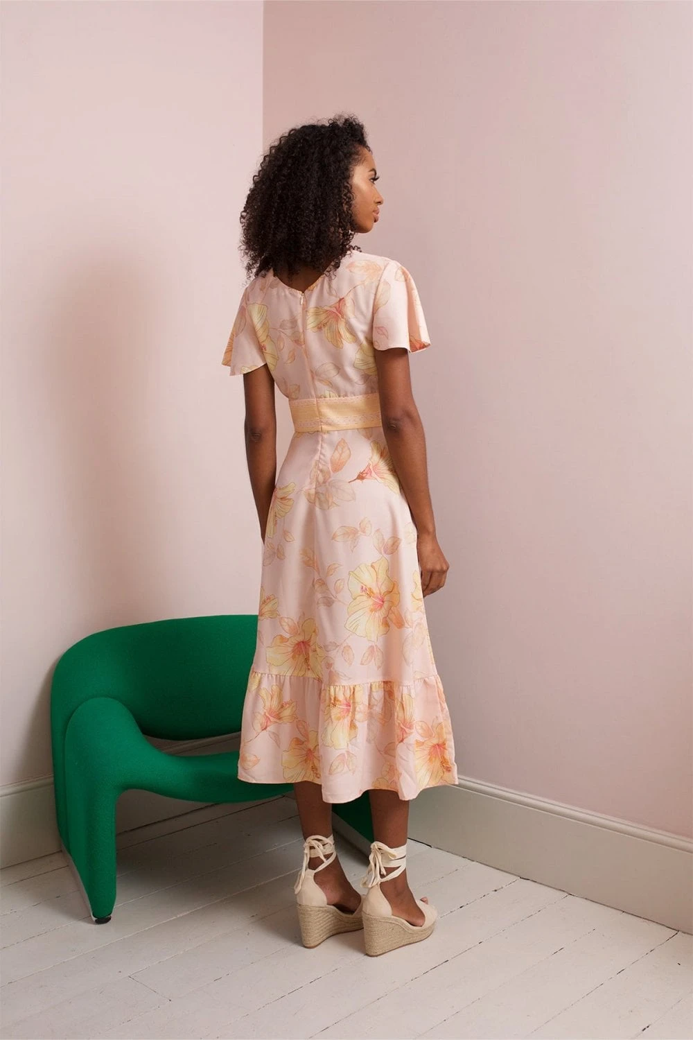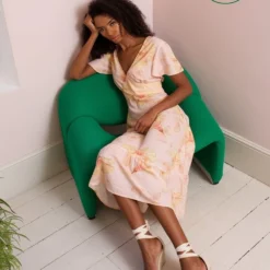 One of the most on trend styles this Summer! Our Mabel Dress features a flattering V neck empire line midi dress with angel sleeves and frill at the hem. The perfect dress for attending a Summer wedding, date night or evenings out with friends.