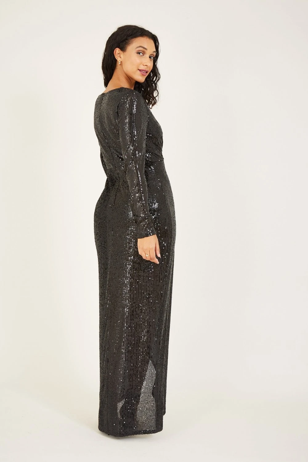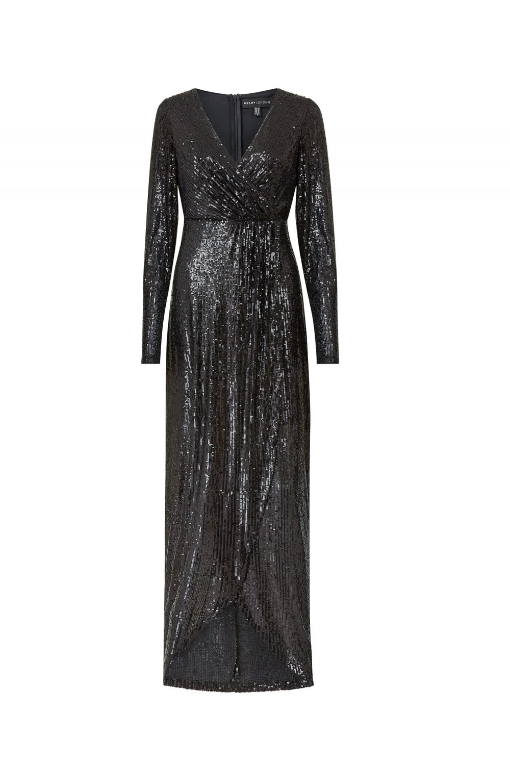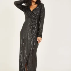 Cut an elegant silhouette in this luxurious Mela Sequin Wrap Maxi Dress. Adorned with glittering sequins throughout, this maxi number is designed in a timeless column shape, draping over the frame, with a delicate V-neckline for a flattering finished. A zip fastening runs up the back to make it easy to slip on and off.