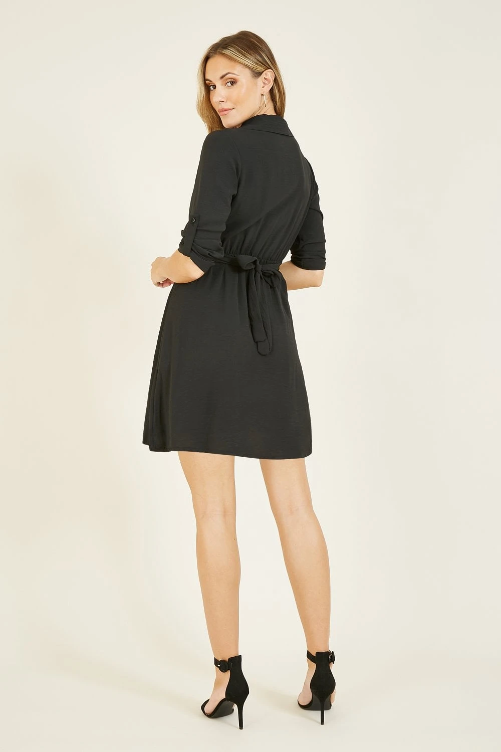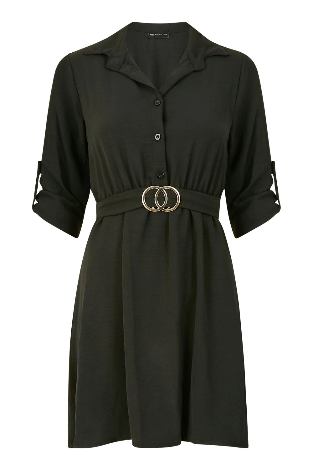 The most versatile dress you’ll buy this season. This Mela Black Shirt Dress With Gold Buckle Belt works as officewear but also evening wear – simply switch up your accessories accordingly. Pulls you in at the waist with an on-trend, gold buckle belt and features button up sleeves.
