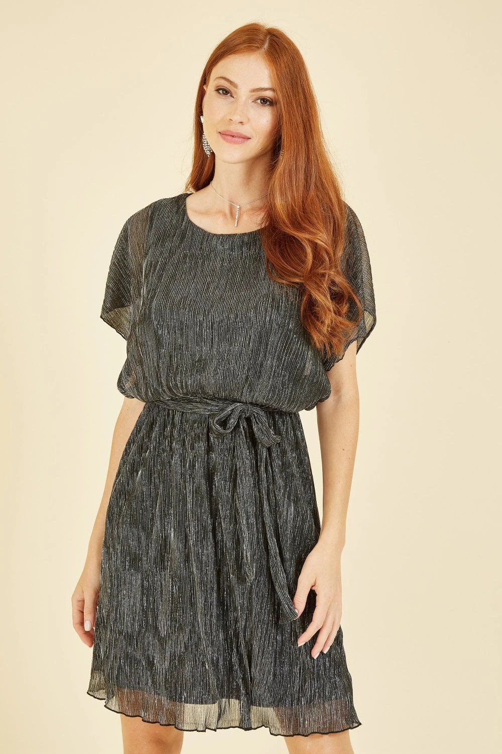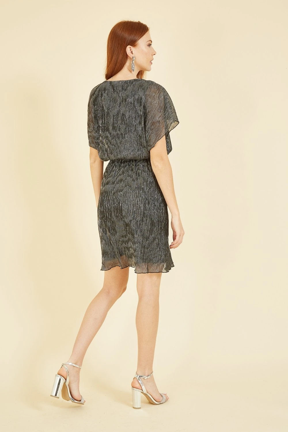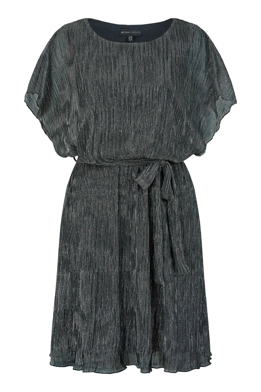 Shimmy your way into the season in this stunning dress. The Mela Black Sparkle Kimono Sleeve Skater Dress featured a knee length hem, self tie waist and round neck line. The sheer fabric subtly shimmers in tones of silver and grey. Add your favourite pair of heels and a cute clutch to complete the fit, simple and elegant.