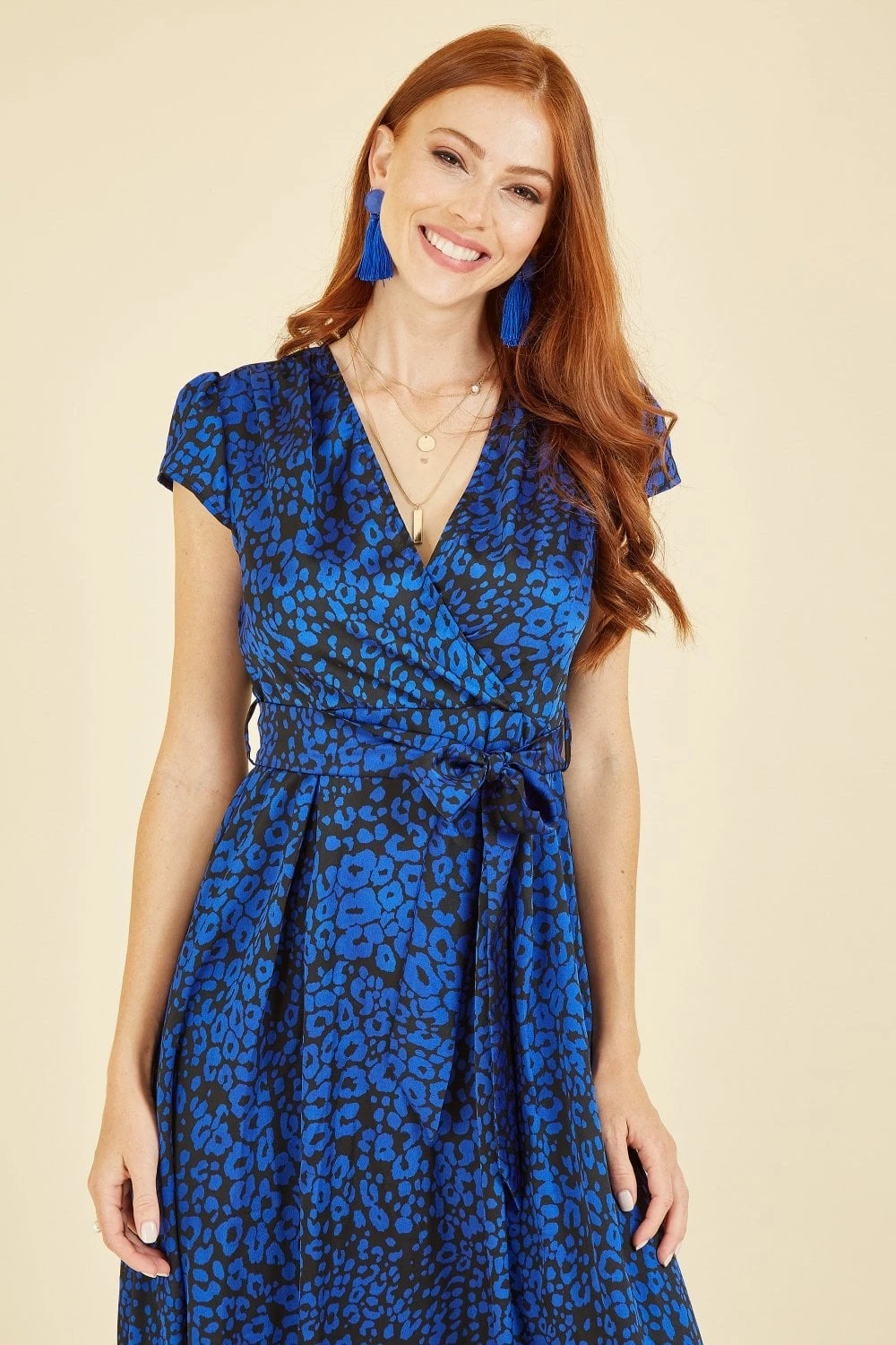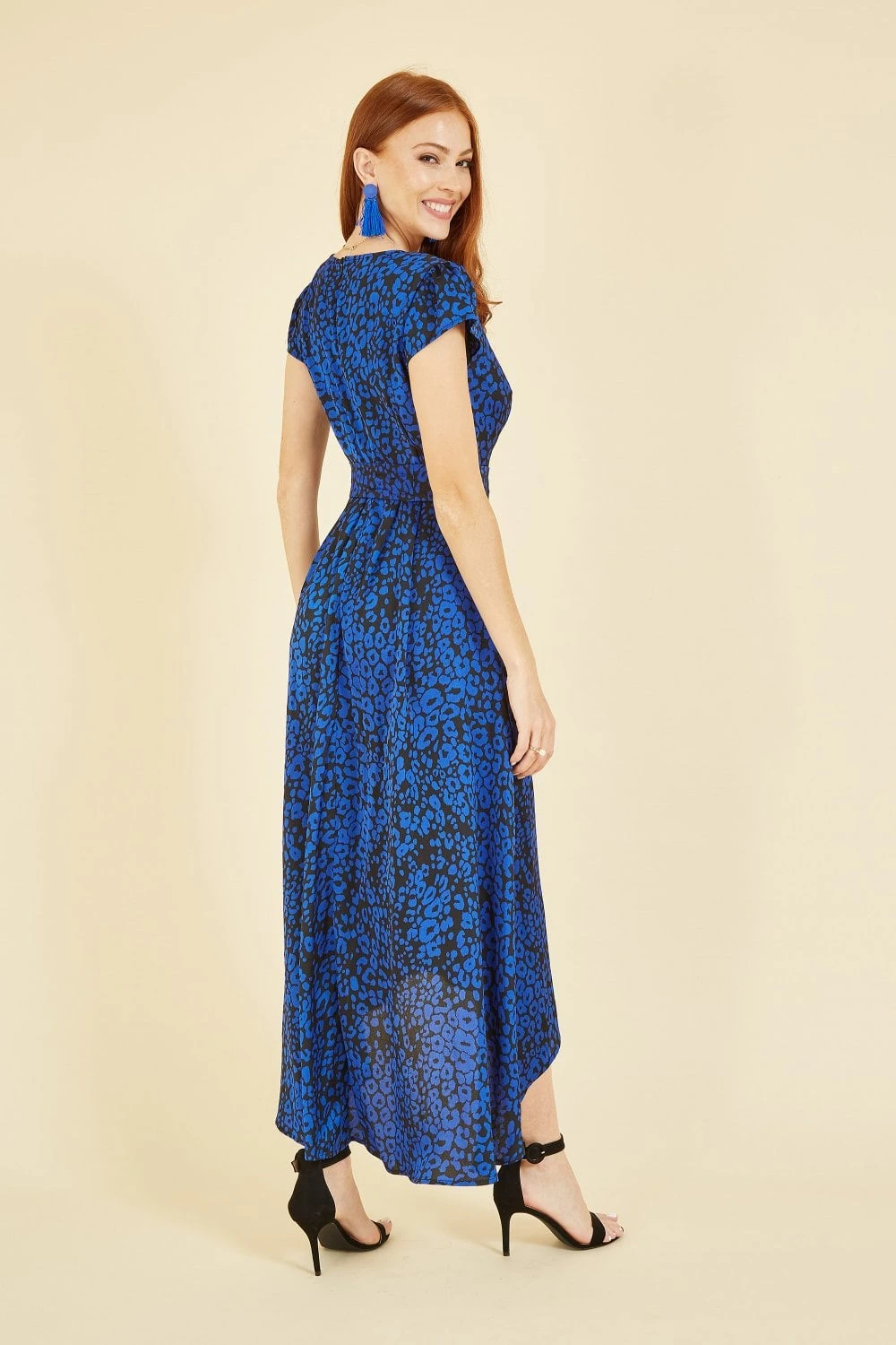 Mela Blue Animal Print Dip Hem Midi Wrap Dress