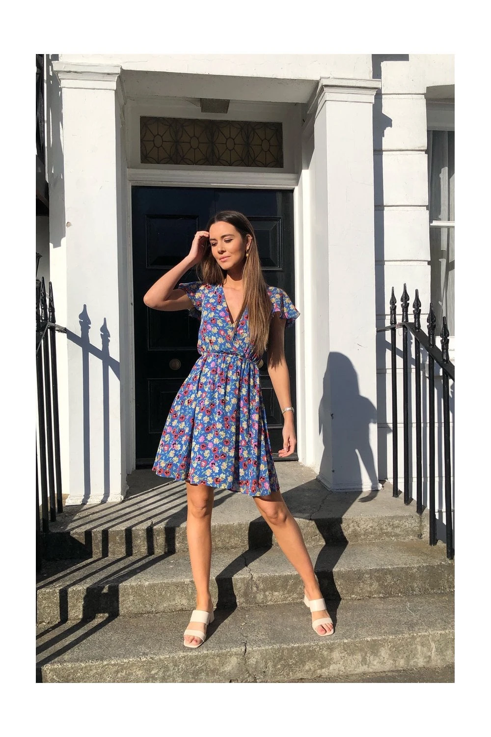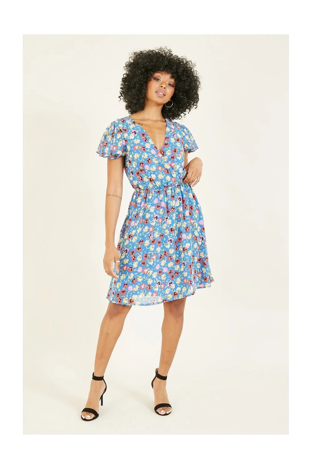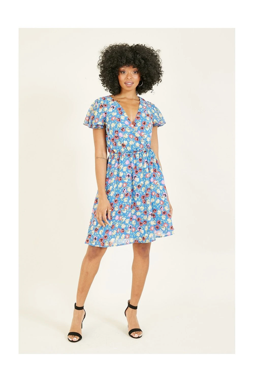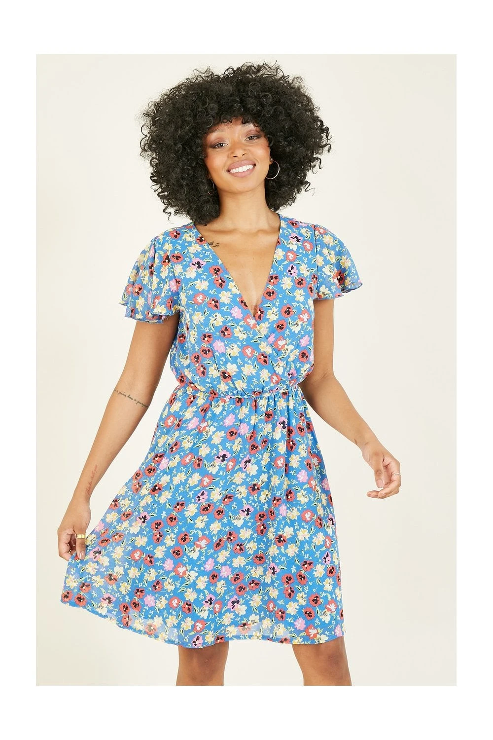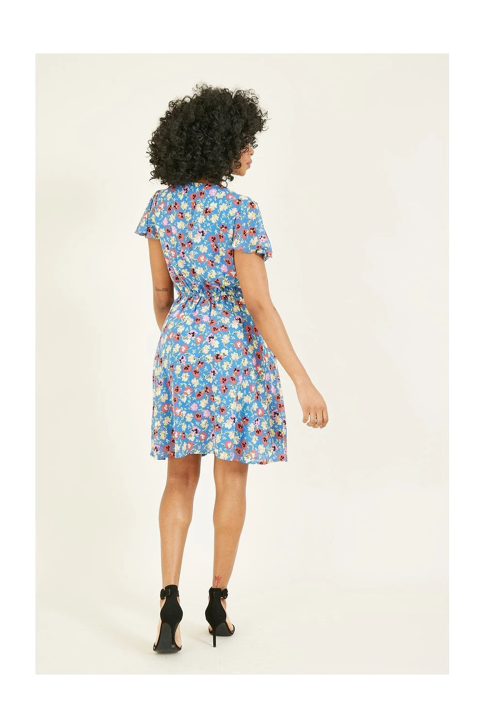 Enhance your natural curves with this classicly cut Mela Blue Floral A-Line Dress. Perfect for warmer weather, this dress features a knee skimming design, and short sleeves. We love this piece paired with a block colour, kimono style shrug or a simple denim crop. Match with pink, red or yellow accessories to bring out the floral tones.