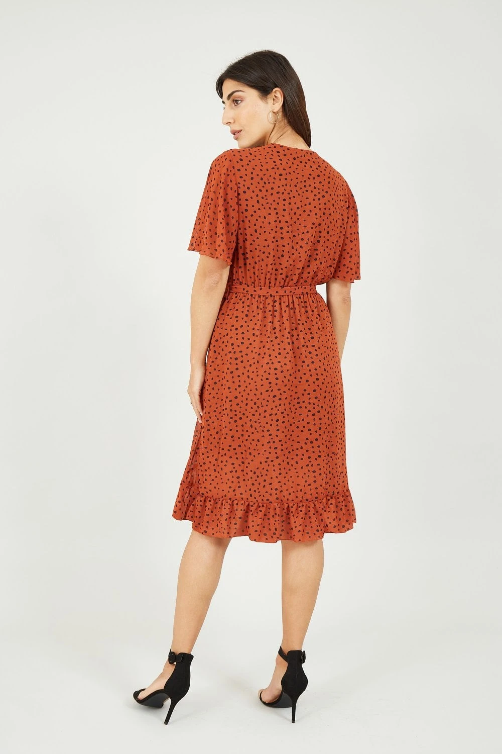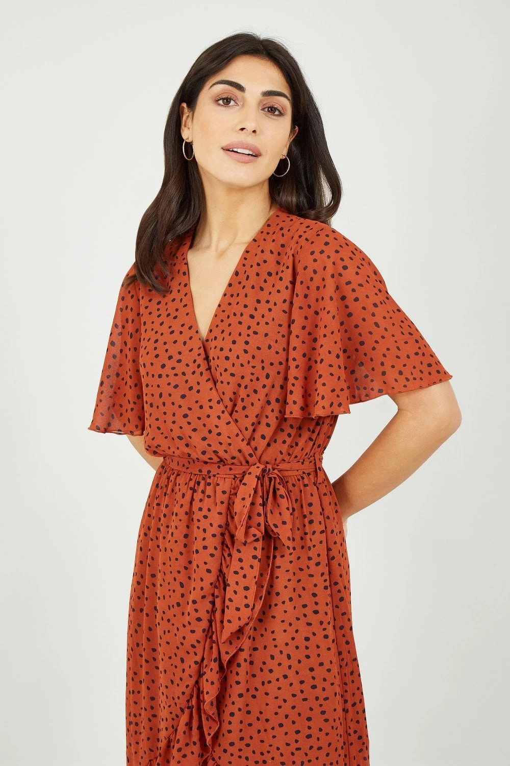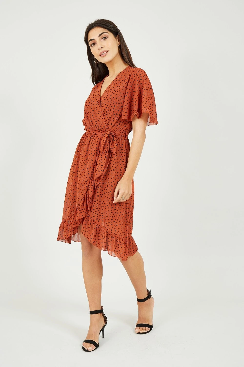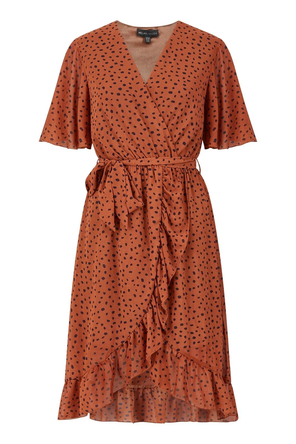 Add a touch of sophistication to your wardrobe with this Mela Dash Print Wrap Dress. Perfect for taking your look from work to weekend, it’s styled with a fitted shape and soft-touch fabric. Ruffles fall below the waist, whilst the decorative dash print brings a modern finish to your versatile ensemble. Accessorize simply with heels and a blazer.