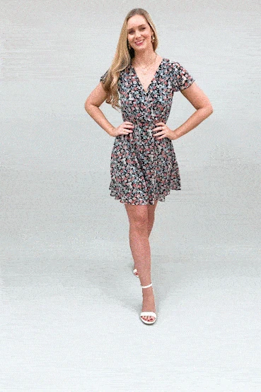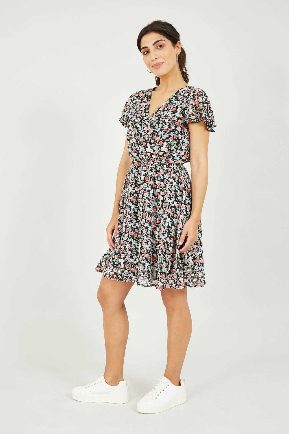 Whoever said florals for Spring were revolutionary, was absolutely correct! The Mela Floral Wrap Skater Dress is designed with pretty florals printed onto light fabric. It has a relaxed silhouette that cinches at the waist, with ruffle sleeves adding a feminine touch. Style with trainers for a relaxed fit.