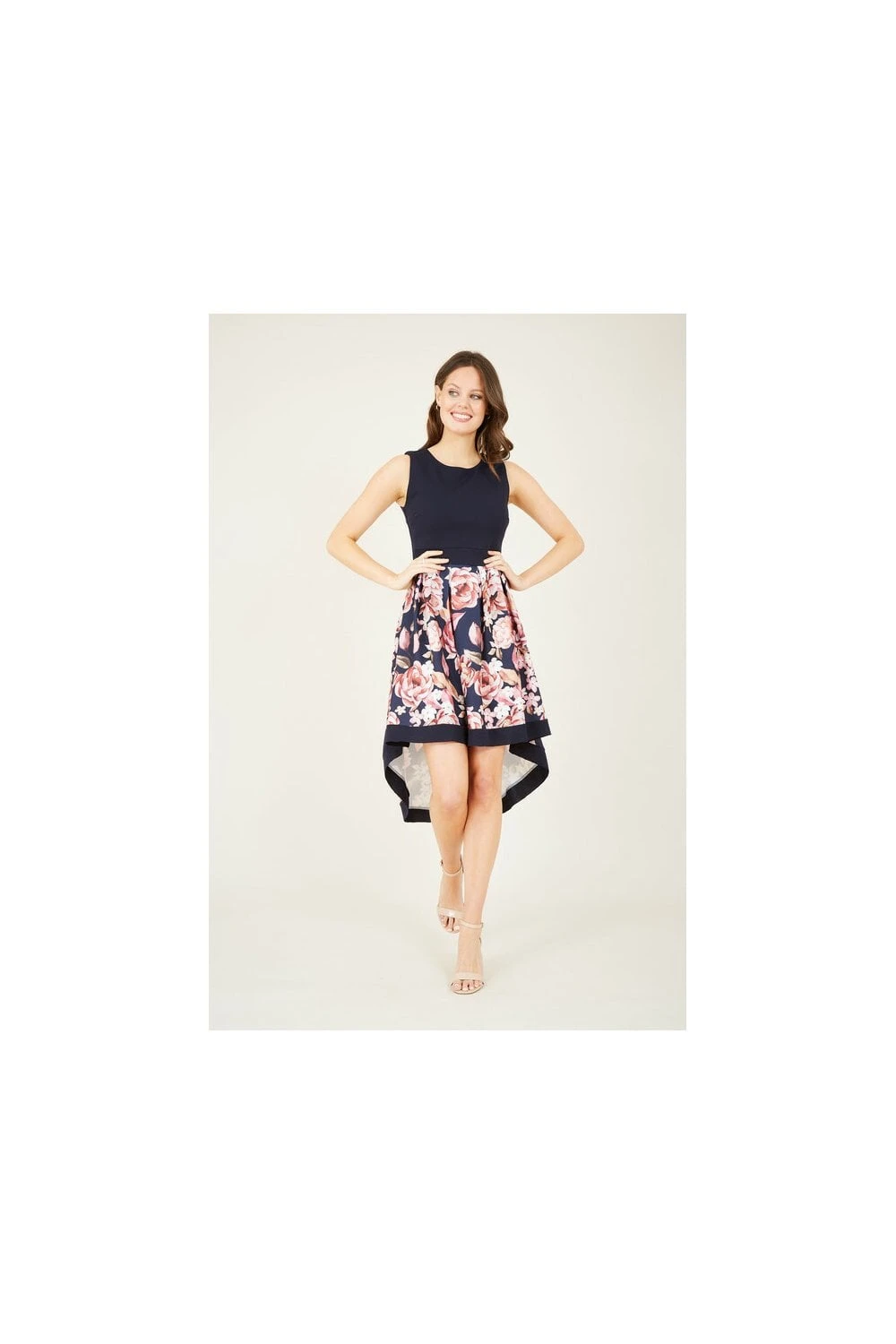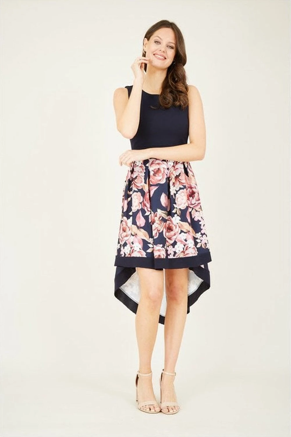 This modern Mela Flower High Low Dress will give you a reason to head to a party. Cut with a standout asymmetric skirt, it’s balanced by the round-neck bodice. The sweet floral print adds a touch of vintage charm, with a border running along the hemline for a refined look. It closes with a secure zip fastening on the back.