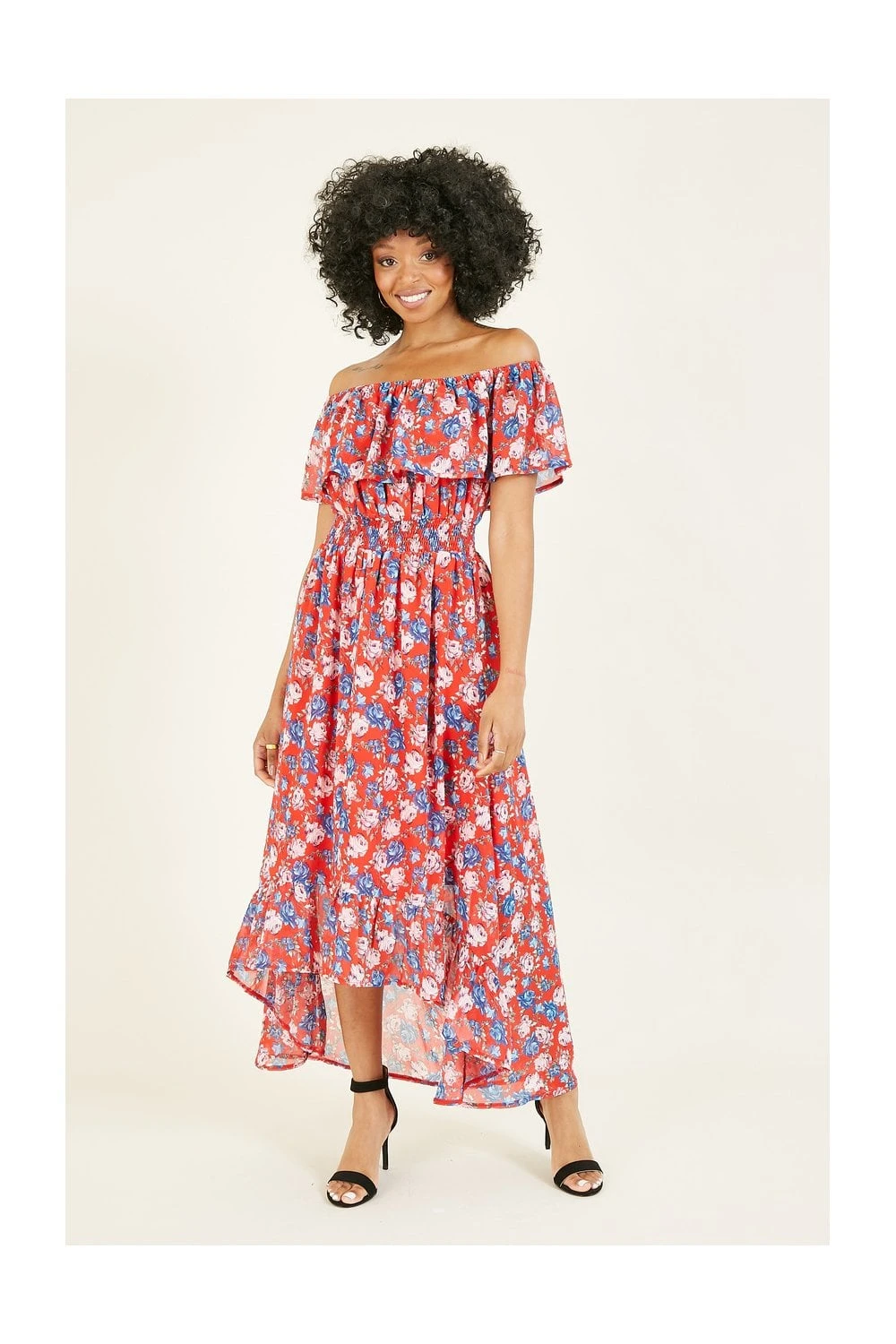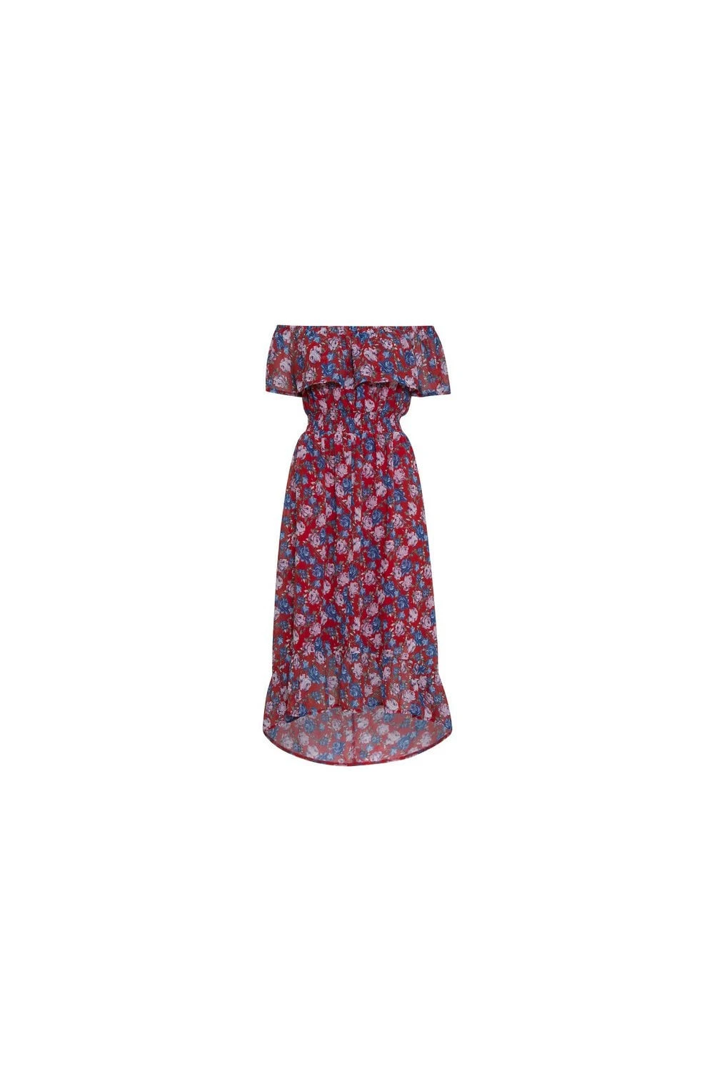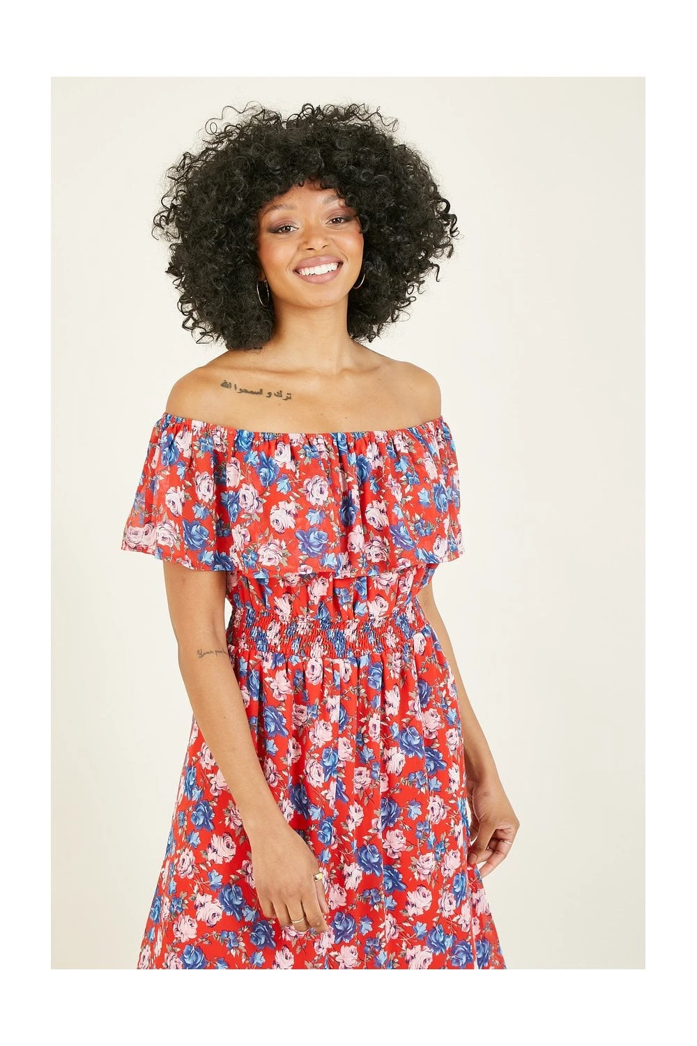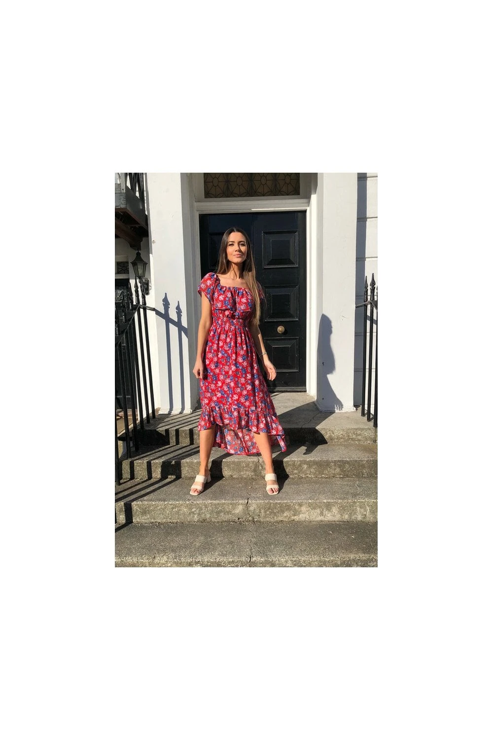 Holy cow! This milkmaid style midi dress features a super flattering elasticated waist, puff sleeves and a high low skirt. Designed with contrasting blue and red florals, match this unique fit with leather cowboy boots and knock’em dead at your favourite festival. If you’re more of a lady who lunches, keep it cutesie and match with strappy heels.