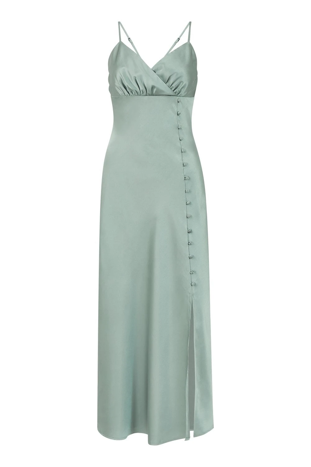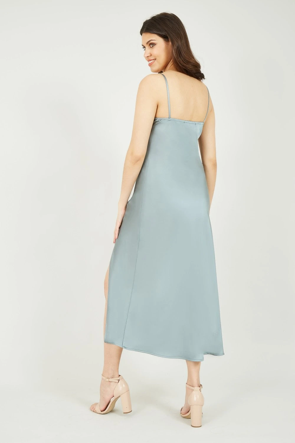 Slip into something really special, the Mela Satin Button Detail Dress will make you feel like a million dollars. The chic and sexy slip dress will accentuate your figure. The slinky satin fabric features a button down detail running from waist to the top of a thigh high split on the midi length hem. Top off the glamour of this garment with silver jewellery and strappy sandals.