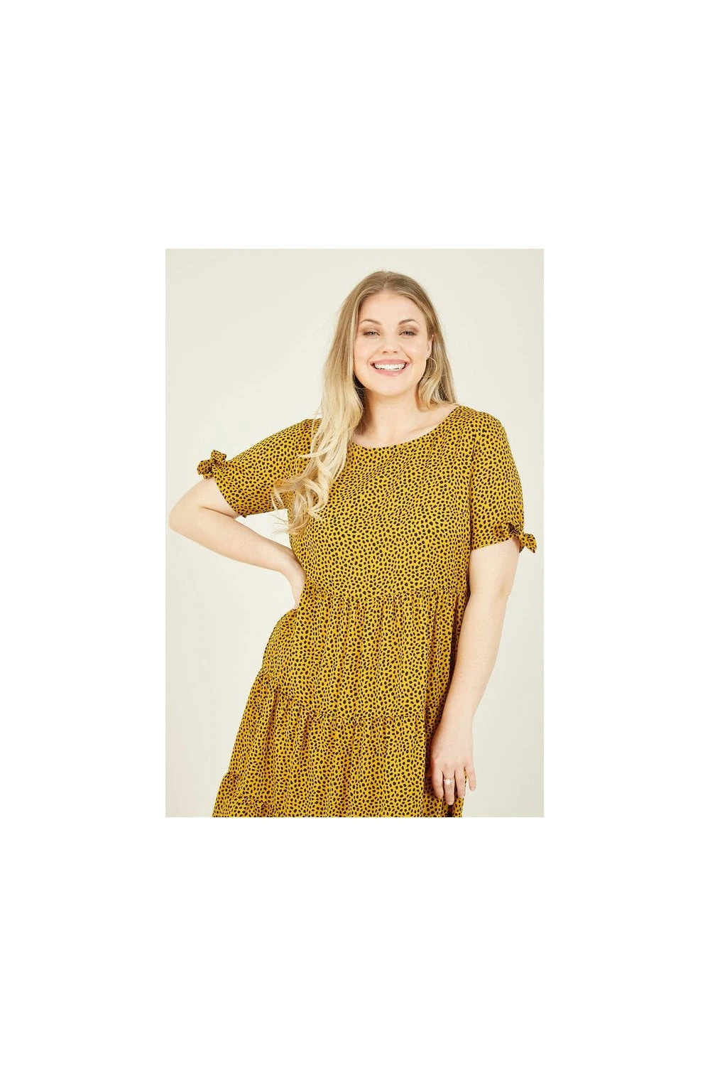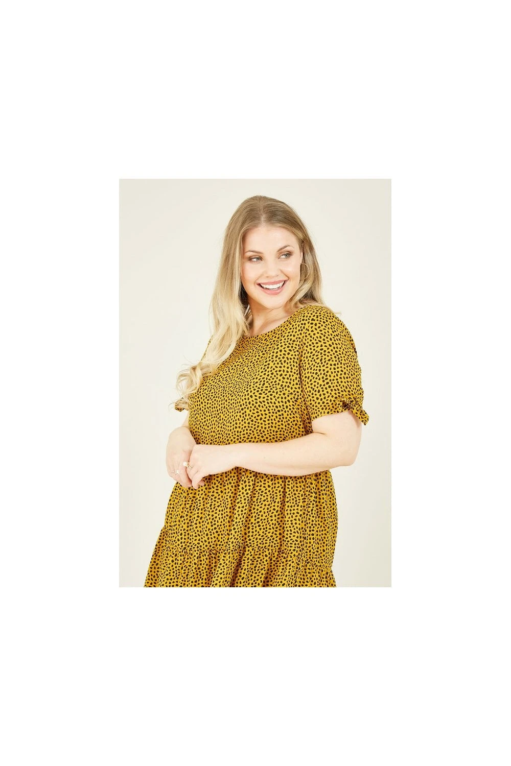 You loved it so much, so we recreated it (we a little Yumi twist, of course). Featuring a delightful sprinkling of print, our Yumi Plus Size Animal Dash Tiered Tunic Dress features a relaxed shape, with voluminous tiers cascading from the waist. The short sleeves have been updated too with sweet ties that add a retro feel to your look.