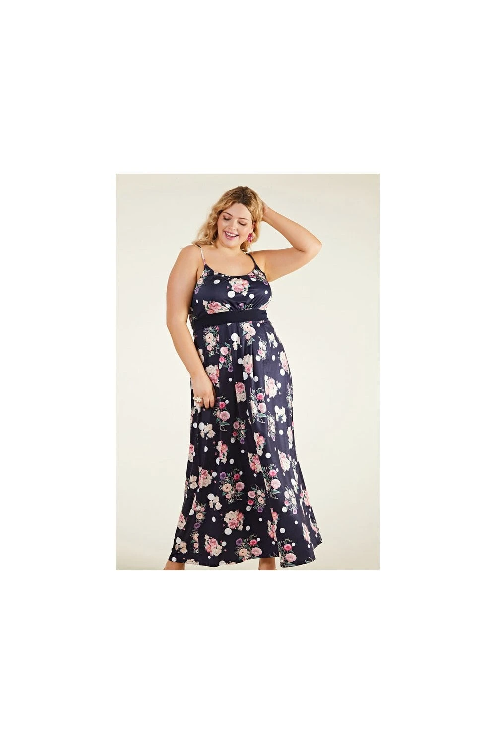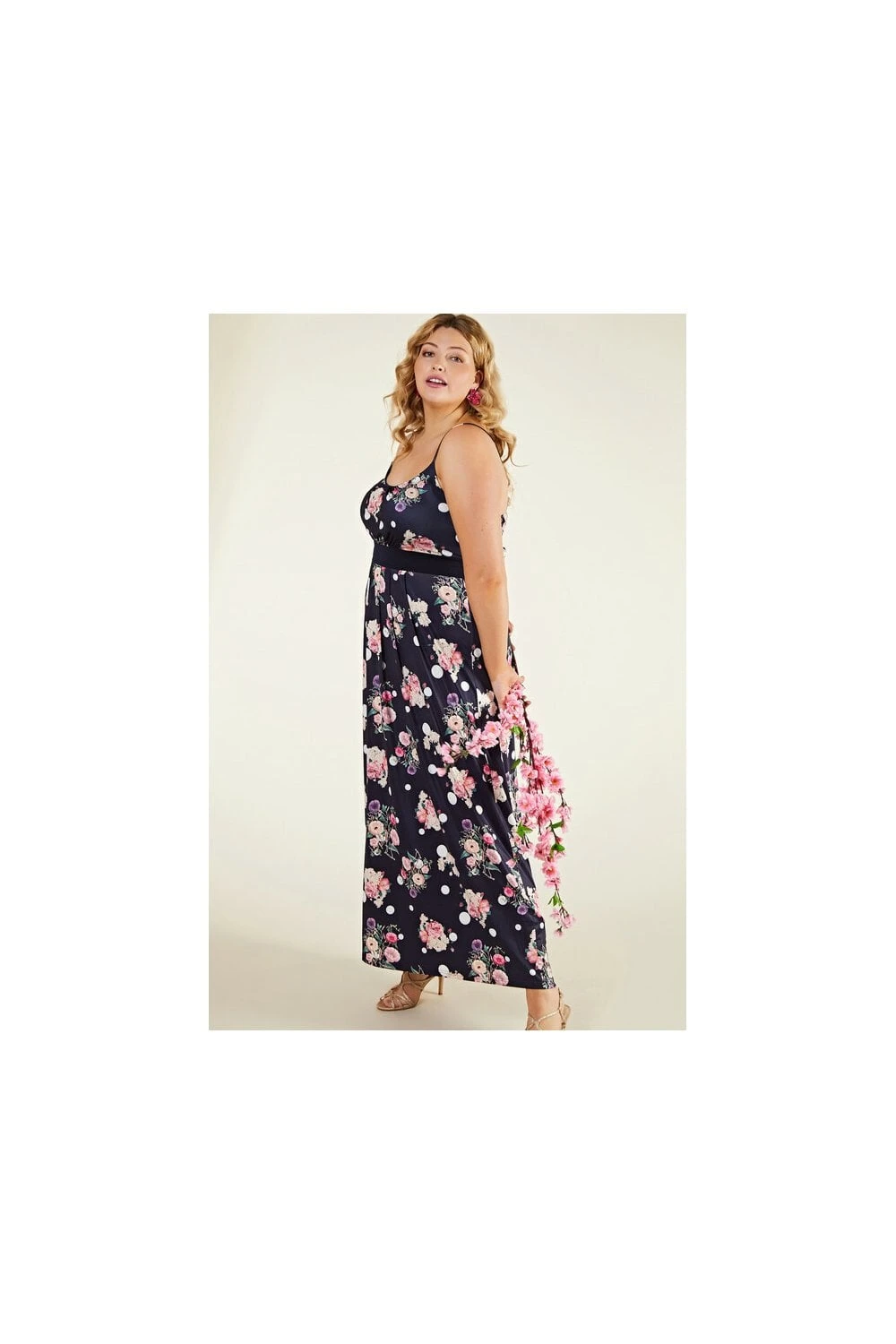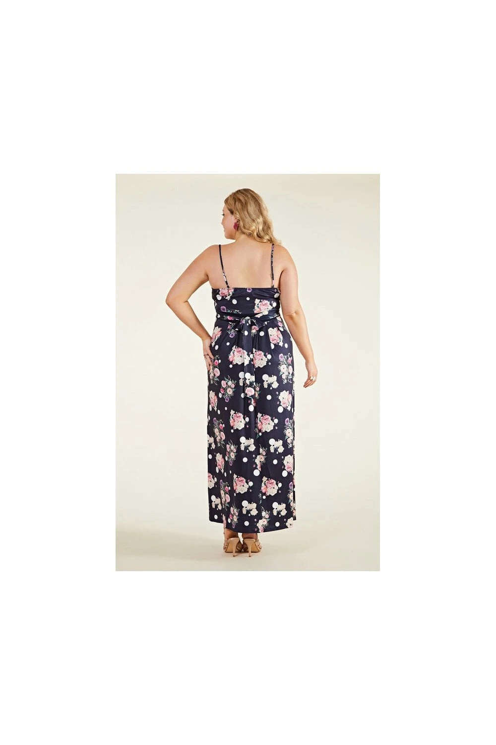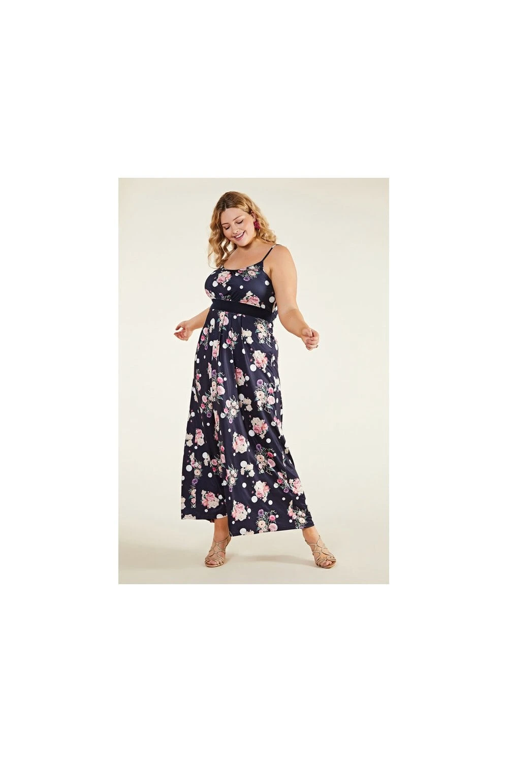 Why settle for one print when you can have two? Detailed with spots and florals, this Plus Size Spot and Floral Maxi Dress is cut from slinky jersey that moves with your body, cinches at the waist, and flows into a full-length skirt. A tie runs around the centre to highlight your curves, while adjustable straps make it a comfortable choice for parties.