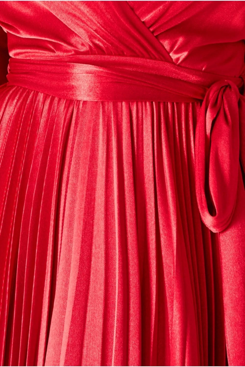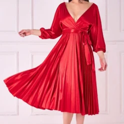 This satin pleated skirt wrap midi dress is the perfect choice for any occasion, whether it’s a wedding, christening, or semi-formal event. With its elegant midi length and beautiful pleated skirt, this red dress is both flattering and comfortable to wear. With its luxurious feel and its subtle sheen, you will stand out in any crowd. The wrap-style bodice and cinched waist create a flattering silhouette that will flatter your figure and make you feel confident and beautiful. Whether you’re attending a formal event or a more casual gathering, this red satin dress is the perfect choice for any wedding guest or special occasion. So why wait? Add it to your wardrobe today and step out in style!
