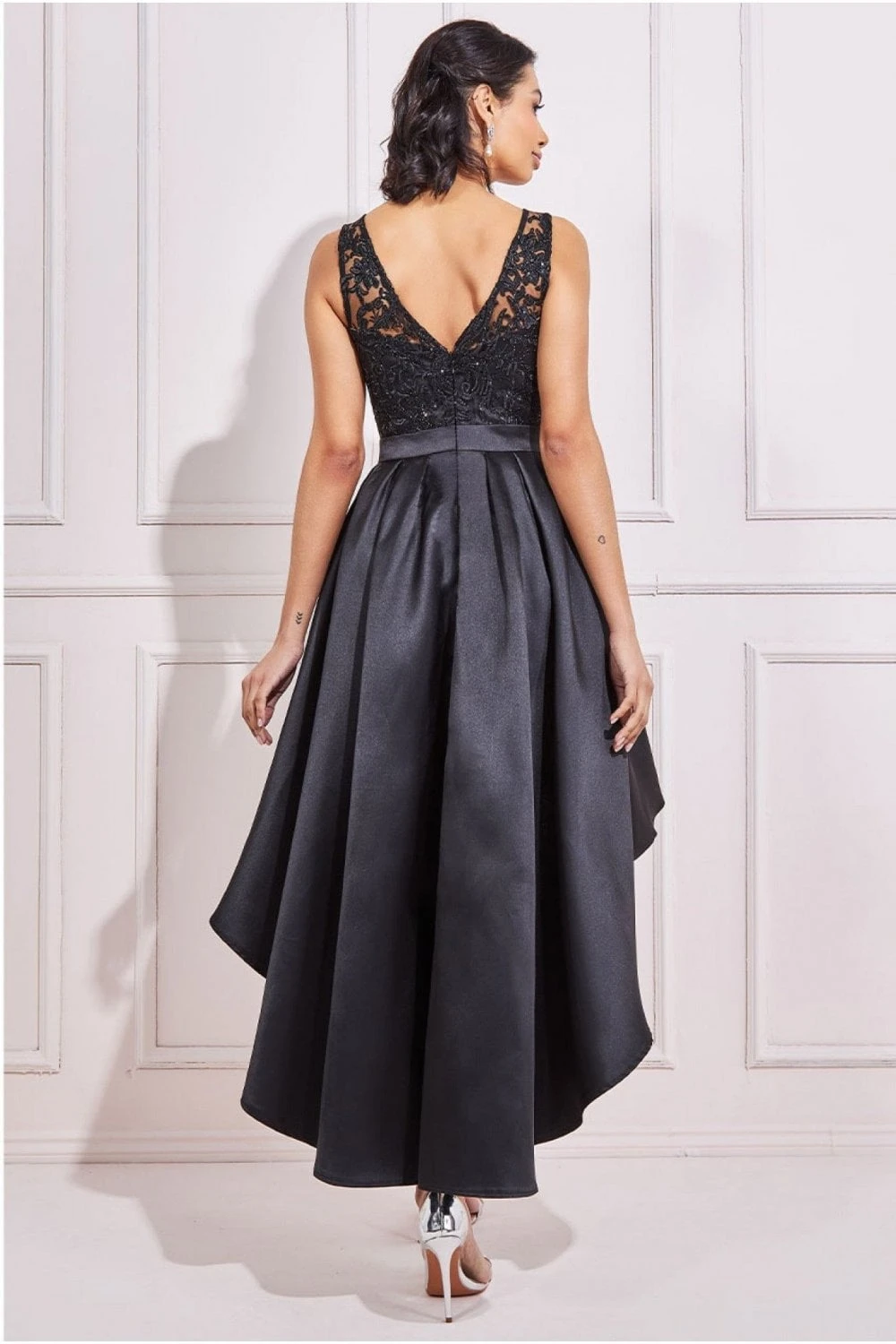This stunningĀ black midi occasion dress combines the glamour of sequins with the luxurious feel of satin for a truly show-stopping look. This blackĀ dress features a dipped hem that adds a touch of drama and sophistication. The sequin bodice sparkles and shines with every movement, while the satin skirt flows beautifully to create a flattering silhouette. The dress also has a sleeveless design and a v-neckline, making it perfect for any special occasion. Whether you’re attending a wedding or a black-tie event, this sequin and satin dipped hem midi occasion dress is sure to make you feel like a true star.