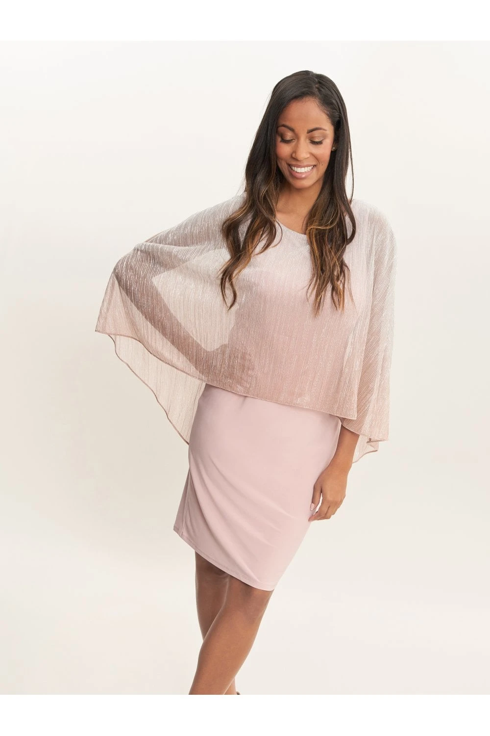 - OVERLAY: 45% POLYESTER, 55% METALLIC. DRESS: 95% POLYESTER, 5% ELASTANEÂ