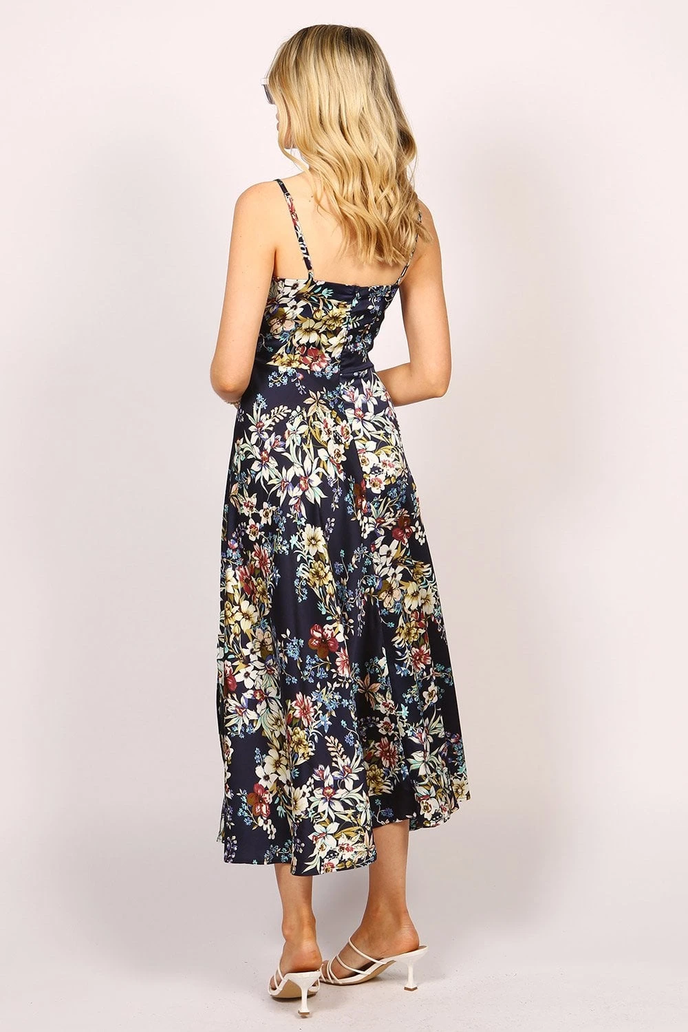 Step out in this blue tie front Dress by Tenki London. This strappy floral dress has a sweetheart neckline with a tie at the bust and a trend-led cut-out. Designed with back zip fastening for fit, this gorgeous satin dress has adjustable straps and a slit cut at the thigh area for that glam look. Team this maxi dress with heels or sandals and make yourself look like a diva.