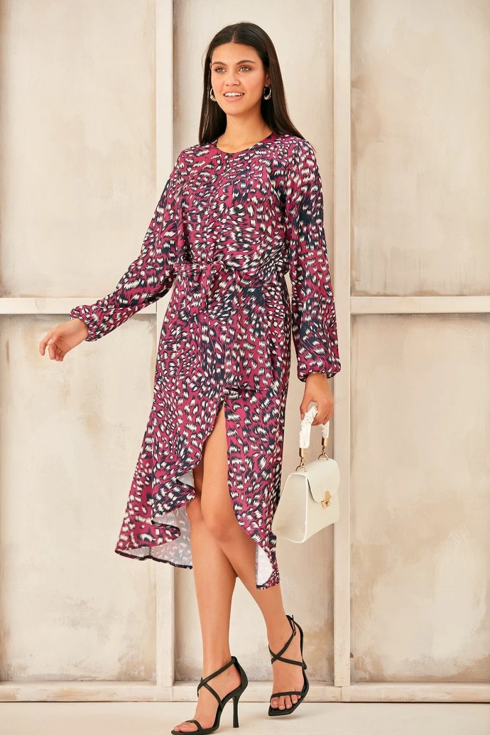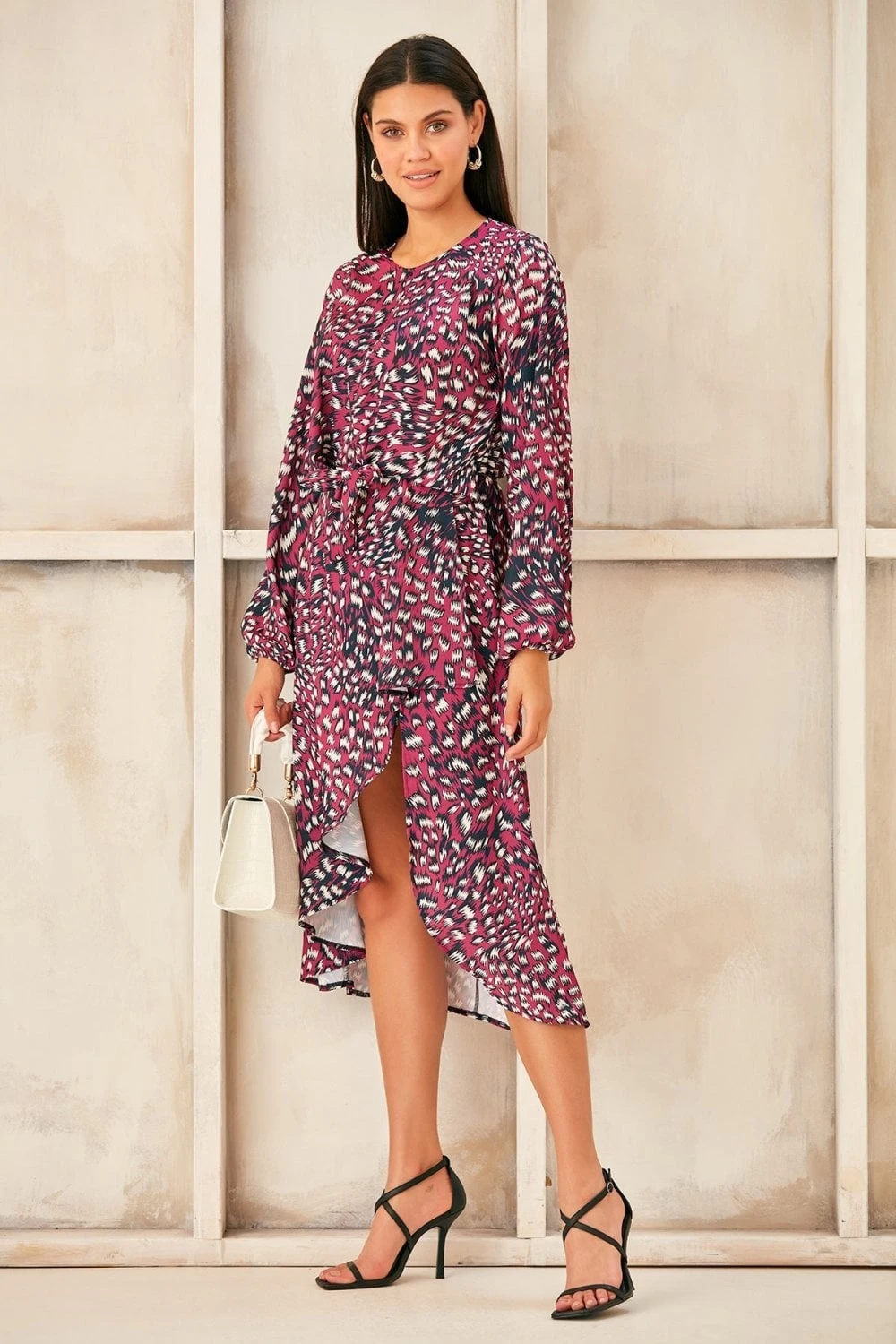 Wrap Long Sleeve Midi dress with Asymmetric Hem and side slit. Wear as party dress, evening dress, occasion dress or cocktail dress and get all compliments to yourself. Style with high heels and accessories for chic look.