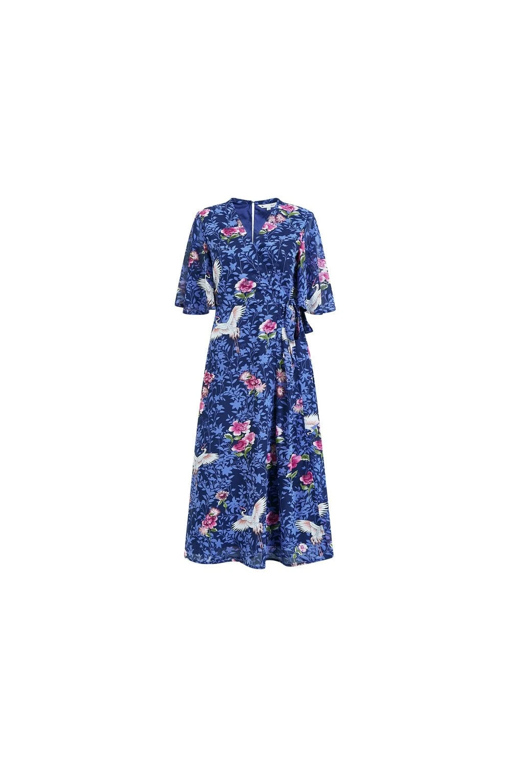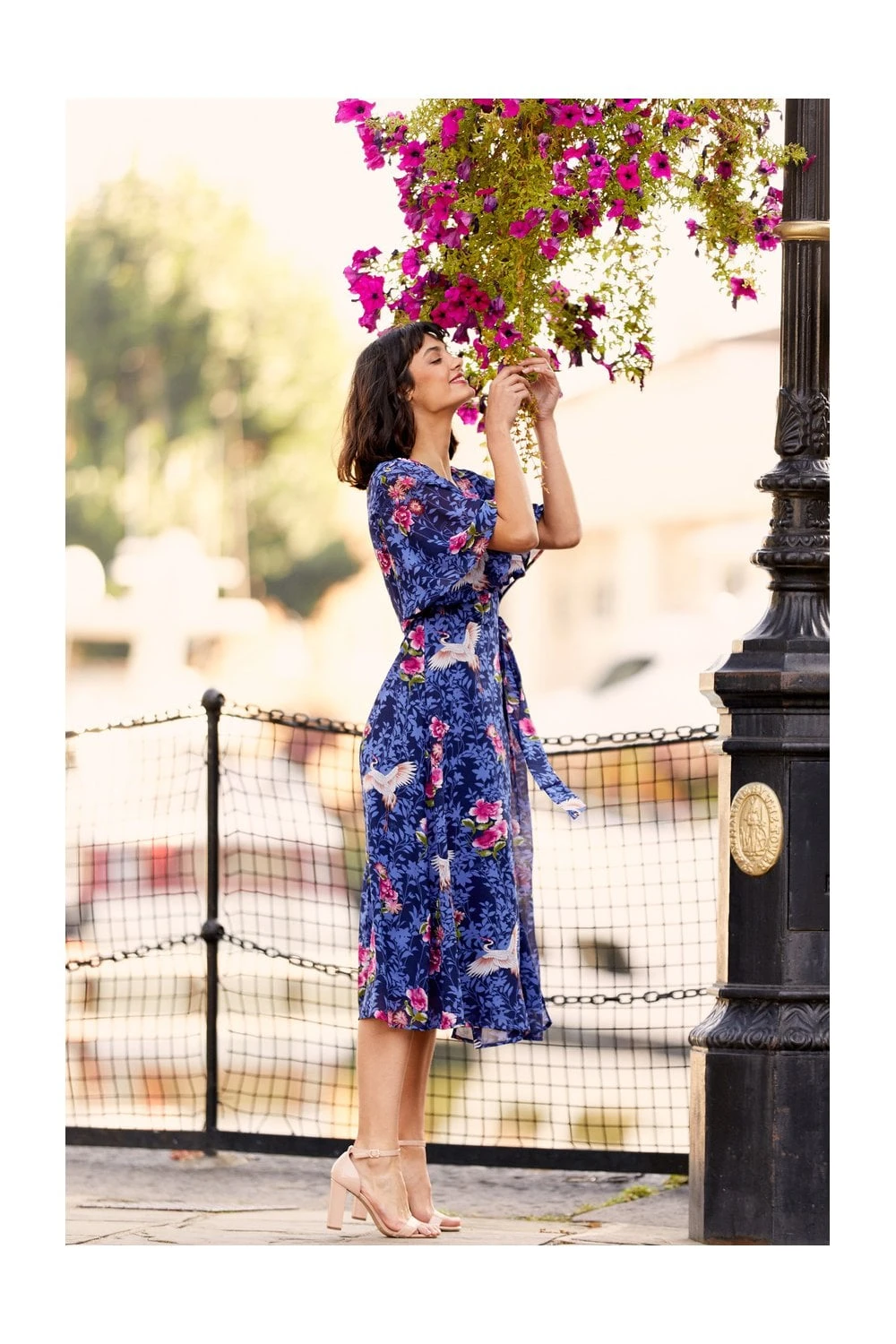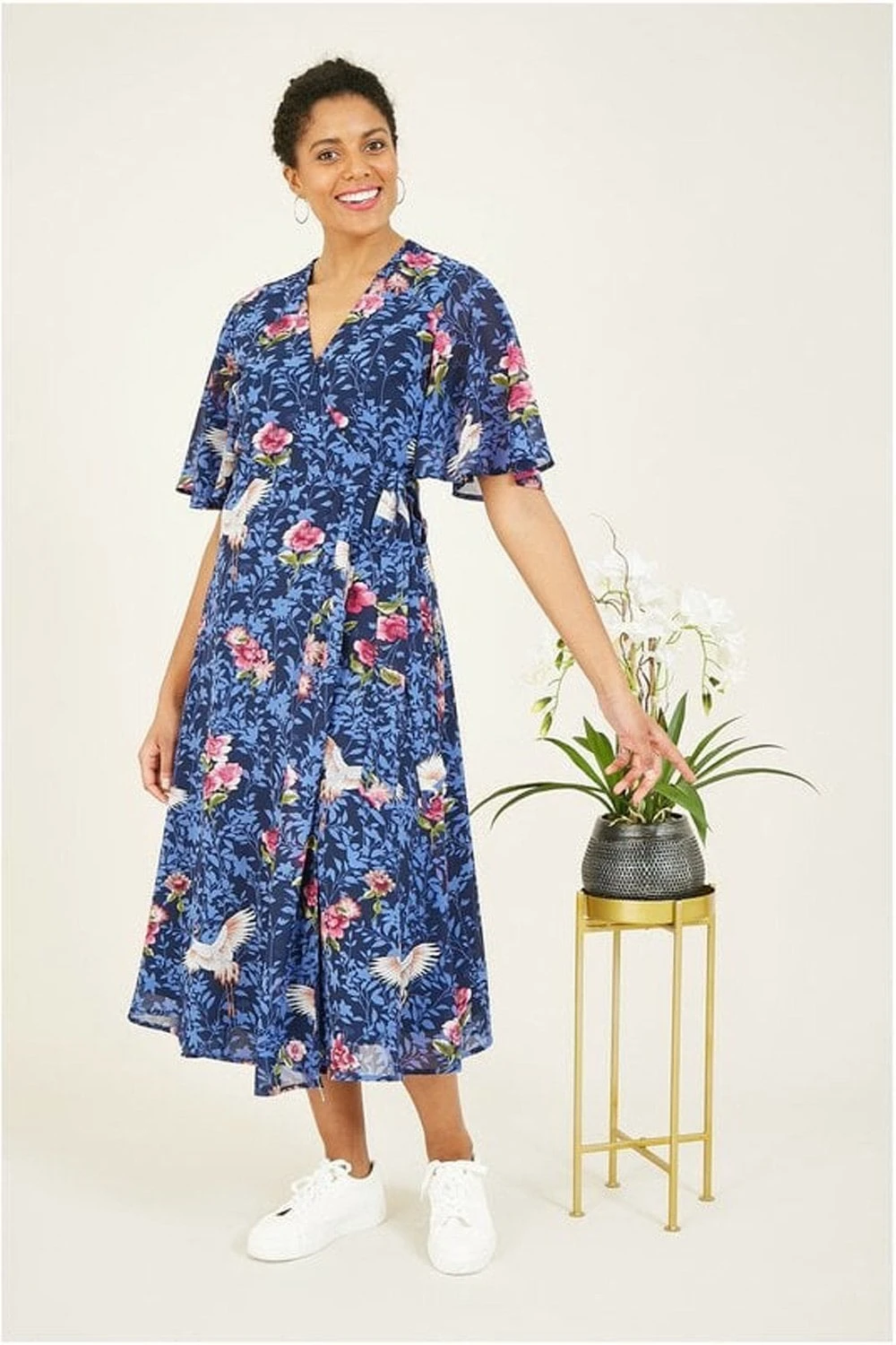Got a thing for iconic prints? Look no further than our Yumi Crane Print Wrap Midi Dress, detailed with a vibrant animal print that’s ready to brighten every step. Framed by short sleeves and a tie waist, the luxuriously light fabric drapes over the knee in a relaxed shape. A sophisticated finish come courtesy of the easy slip on style.