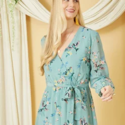 Designed to flatter all shapes, our cheerful, daisy adorned Yumi Blue Daisy Wrap Midi Dress will bring a smile to your face on even the greyest of days. With a self-tie waist fastening and crossover V-neckline adorned with a shirt-like trim, the midi length drops just past the knees, balancing the cut of the draped short sleeves. Pair with black tights and ankle boots to brighten up winter months, or strappy sandals and bracelets when the sun makes an appearance.