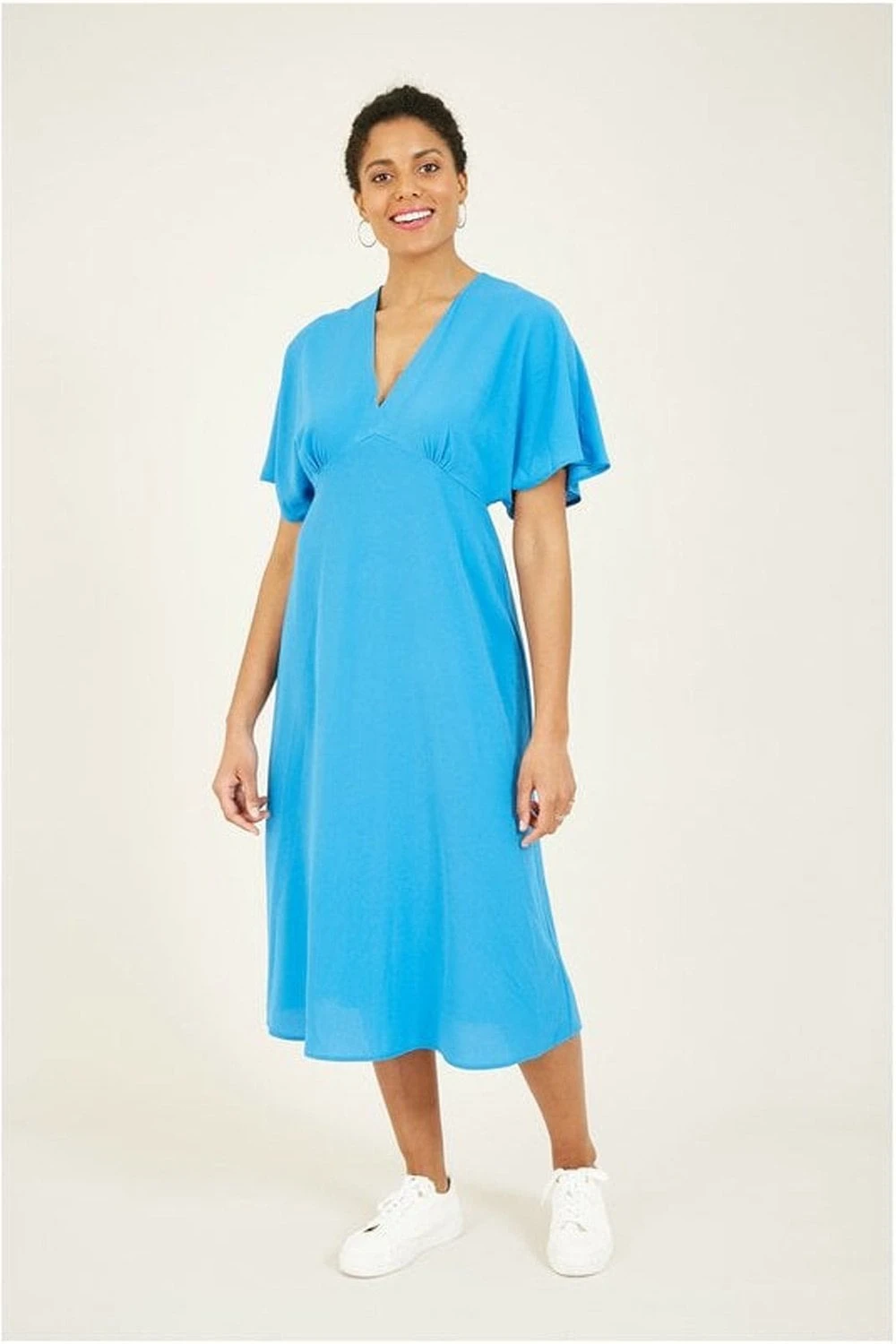 In a bright shade of green, this Yumi Kimono Sleeve Midi Dress is kept classic by a simple design for a wearable addition to your wardrobe. Featuring a relaxed shape with a flattering straight midi skirt, this dress is completed with flared kimono sleeves and a stylish empire line. Wear with heels for dressed up events, or with trainers for dressed down days.