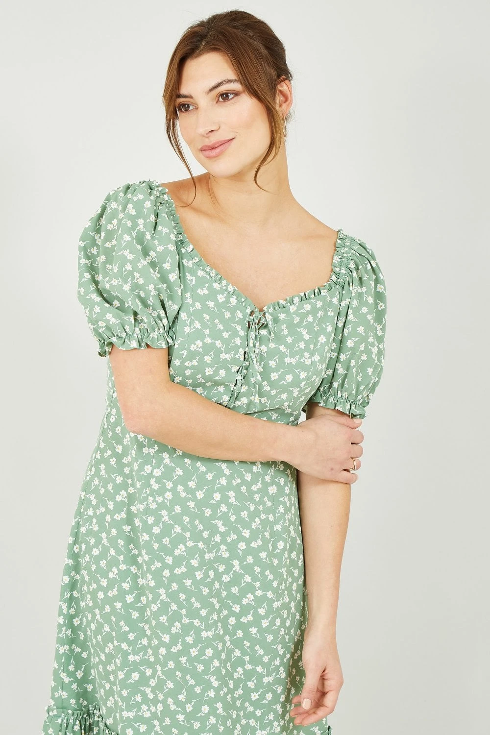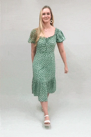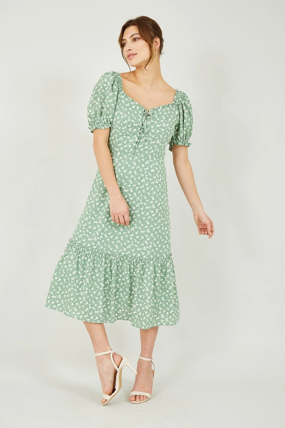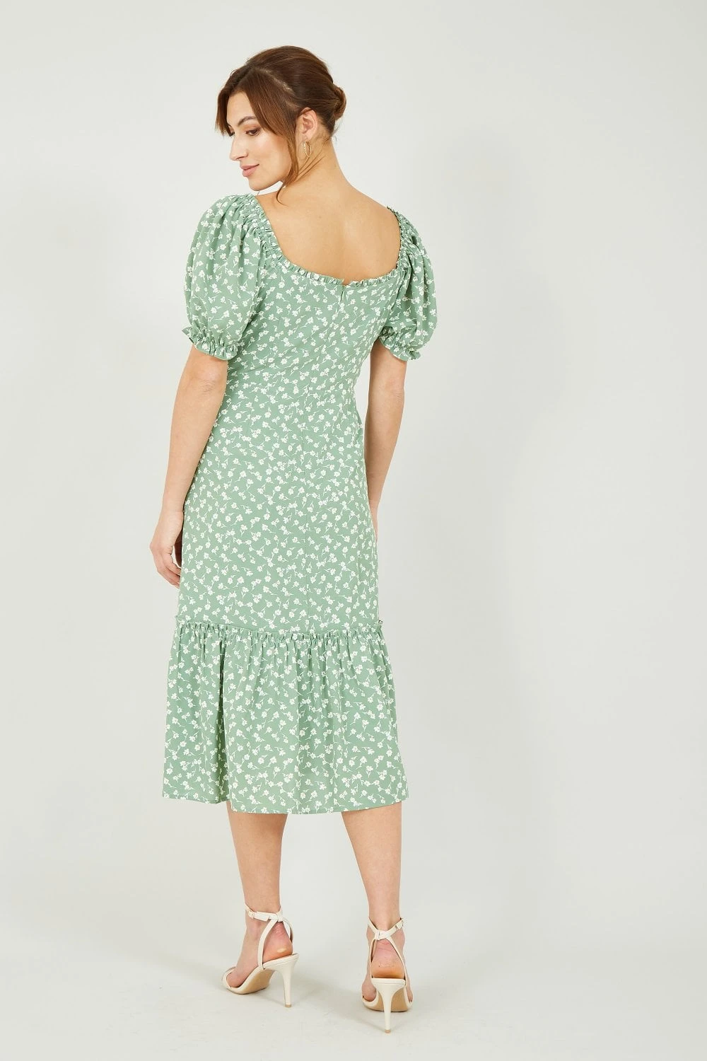 Beautifully crafted in a ditsy print, this midi dress is a wardrobe staple. The soft-touch fabric is crafted into a fitted shape with voluminous puff sleeves to balance the peplum hemline a tie neck for a feminine fit. And there’s a bit of stretch too, ensuring maximum comfort. The perfect finishing touch? The florals, of course. It’s designed in a flowing style with long sleeves and a midi length. Finished with an all-over floral print for feminine charm.