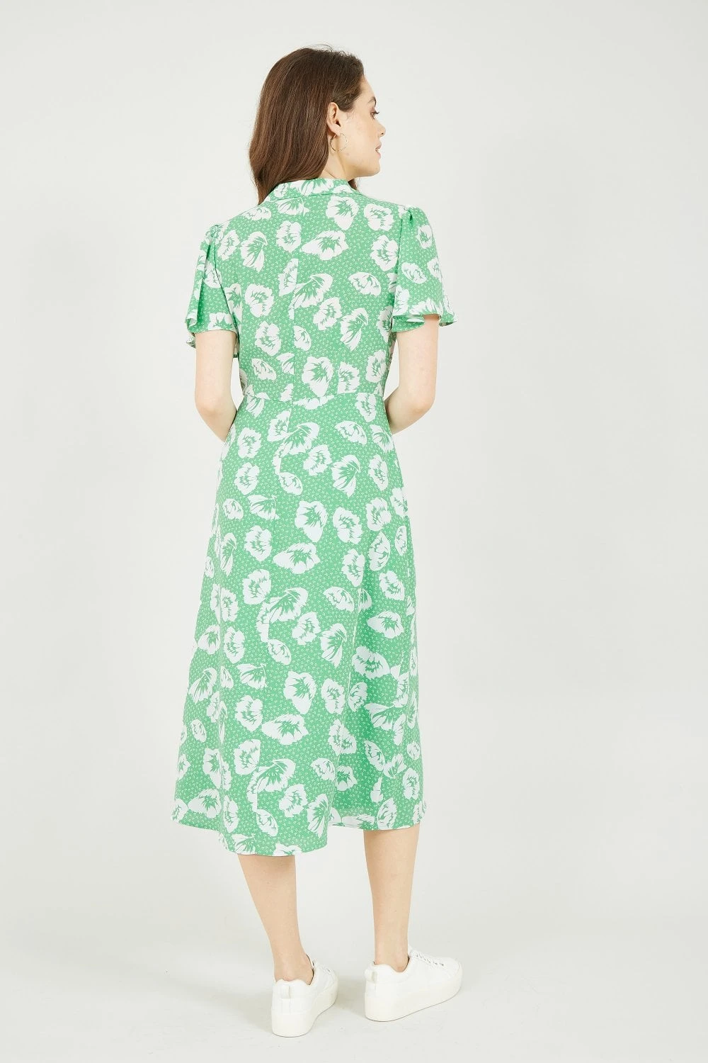 Yumi Green Floral Midi Shirt Dress