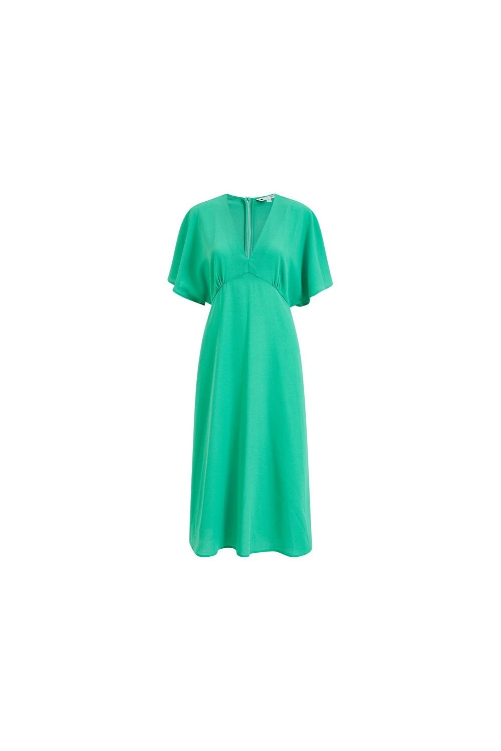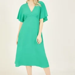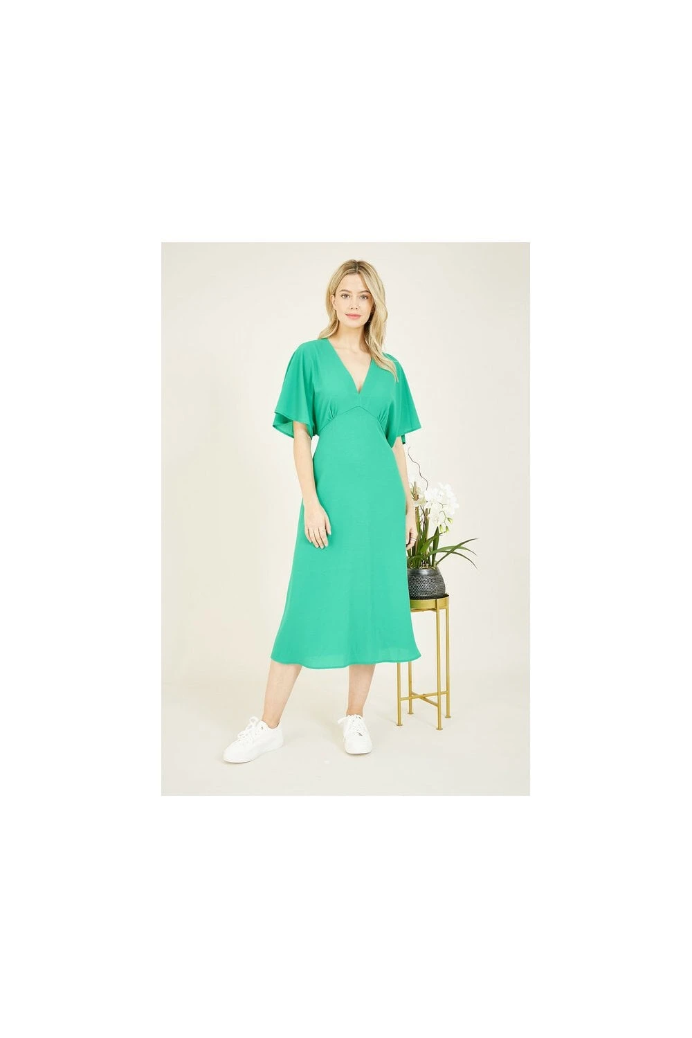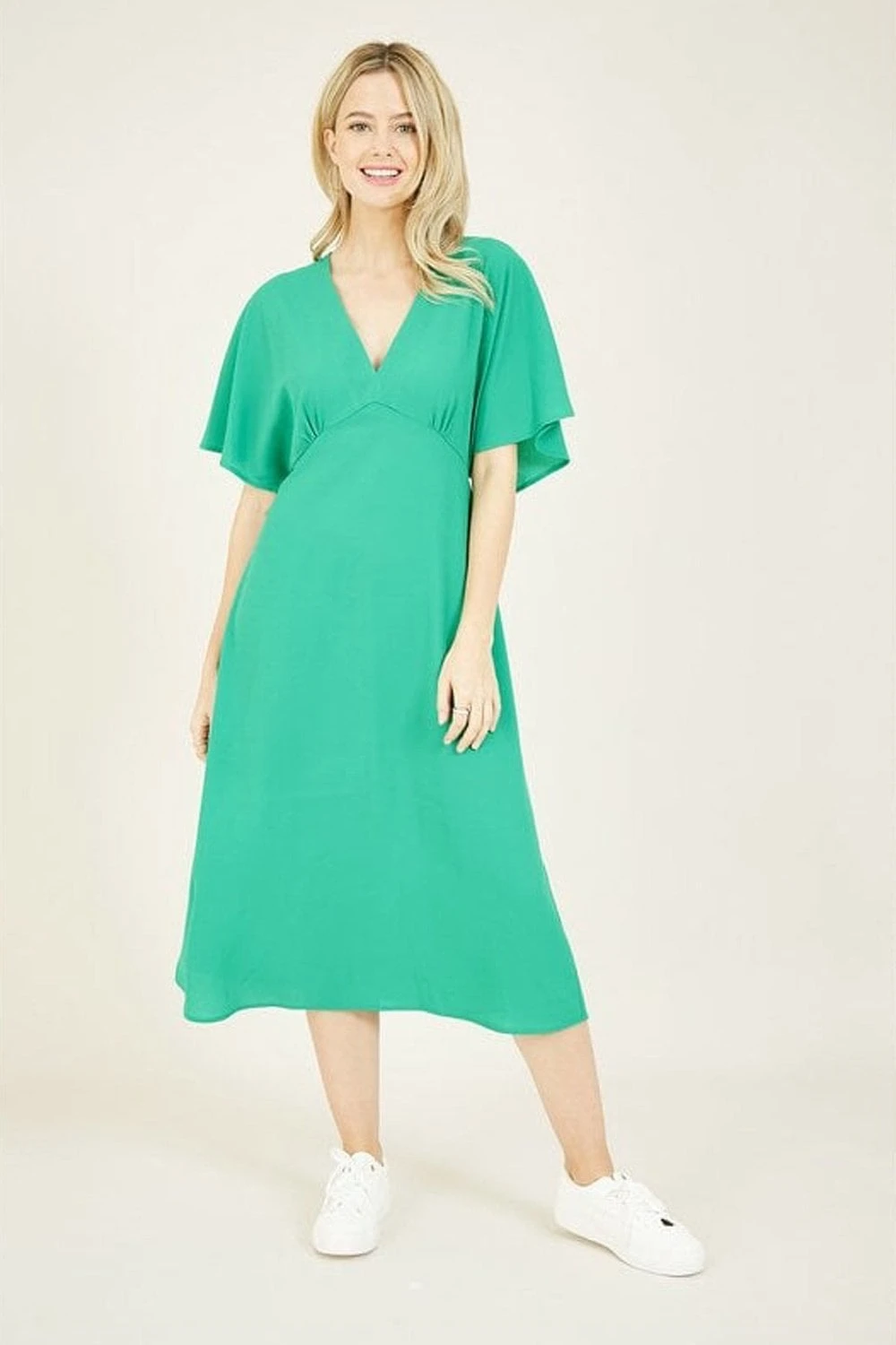 In a bright shade of green, this Yumi Kimono Sleeve Midi Dress is kept classic by a simple design for a wearable addition to your wardrobe. Featuring a relaxed shape with a flattering straight midi skirt, this dress is completed with flared kimono sleeves and a stylish empire line. Wear with heels for dressed up events, or with trainers for dressed down days.