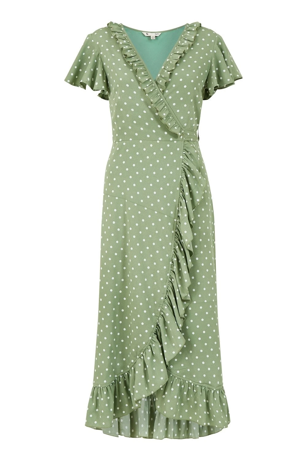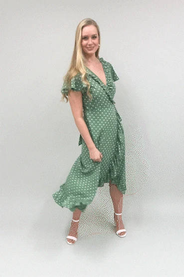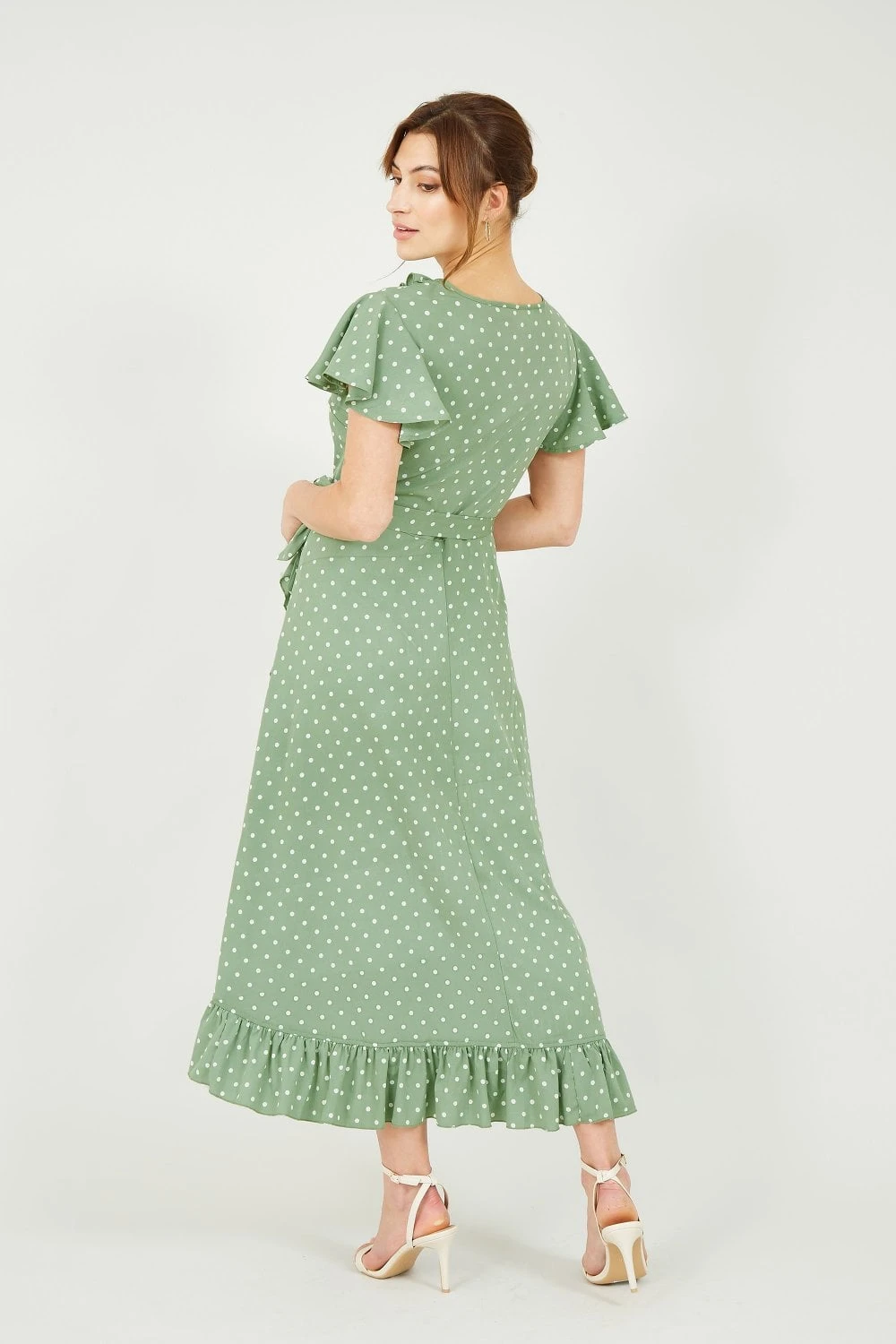 Be the first to review “Yumi Green Polkadot Frill Wrap Dress” Cancel reply