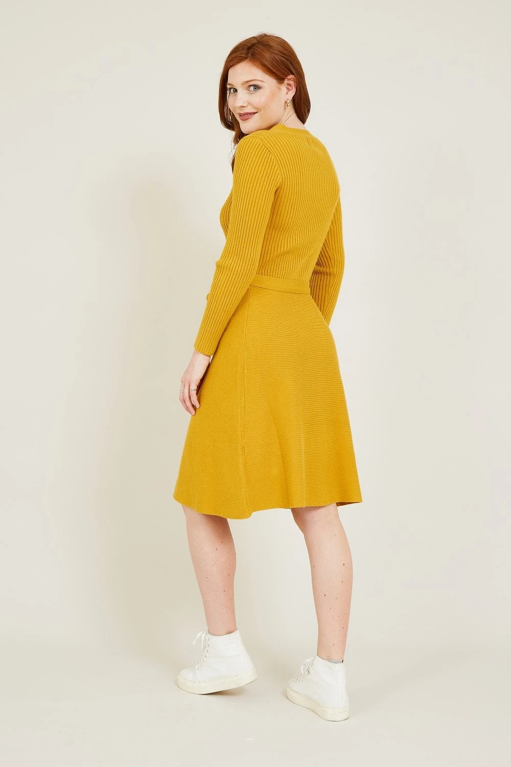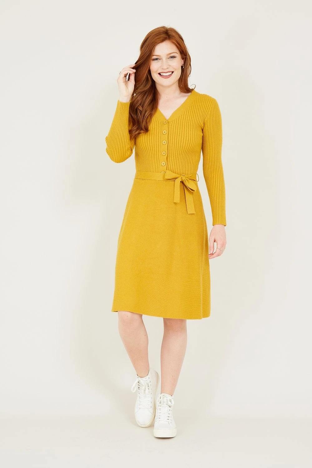 Our bestselling shape is back (and just in the knit of time). Featuring a classic fit and flare shape, this Knitted Skater Dress is detailed with a button front, self-tie waist and luxuriously long sleeves. The blend of soft fabrics bring comfort to your look, with gentle ribbed enhancements keeping your look classic and casual.