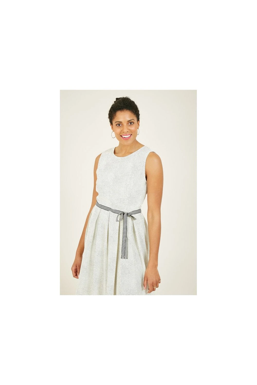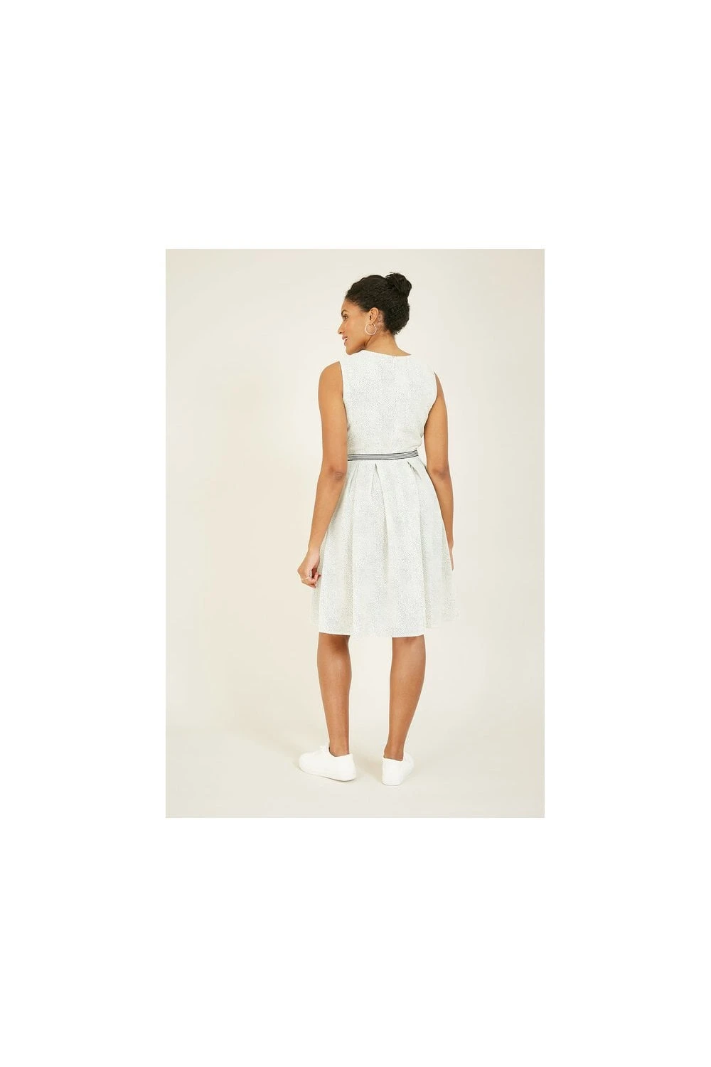 This Yumi Spotted Skater Dress With Contrast Belt is the perfect party piece. In the classic fit and flare shape, it’s adorned with a retro polka dot print, enhanced by a navy stripe waist tie. The light fabric adds movement to your look, with a zip fastening running up the back to finish. Wear for dressed up moments and accessorize with heels.